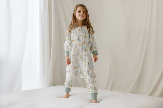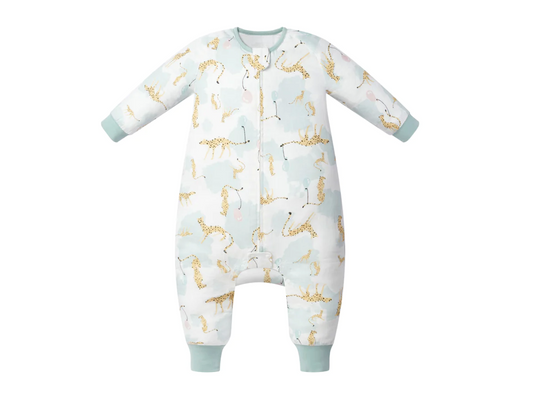 Long Sleeve Footed Sleep Bag 0.6 TOG (Bamboo Pima) - Cheetah Party