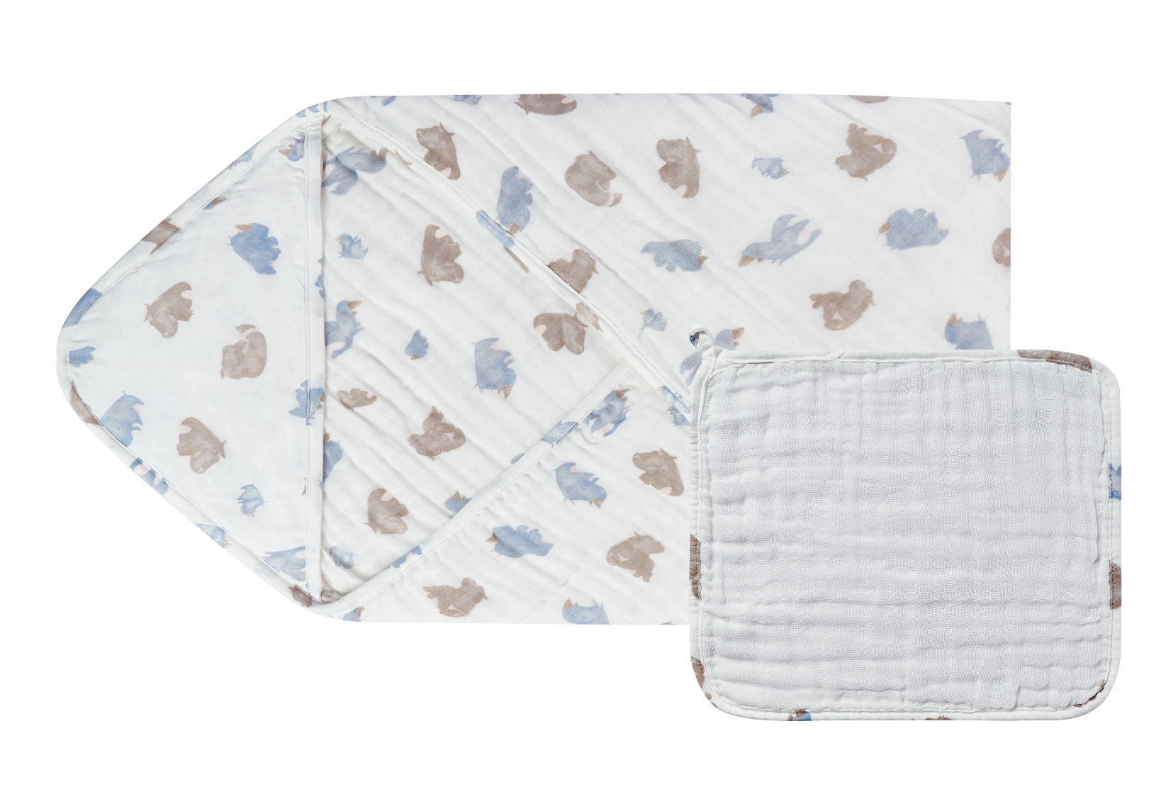 9-Layer Hooded Baby Bath Towel (Organic Cotton) - Rhino Hippo