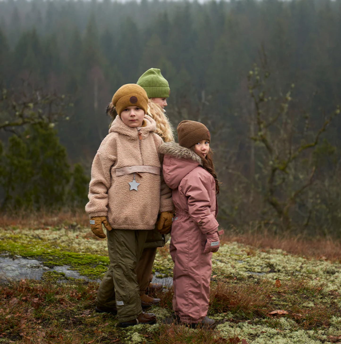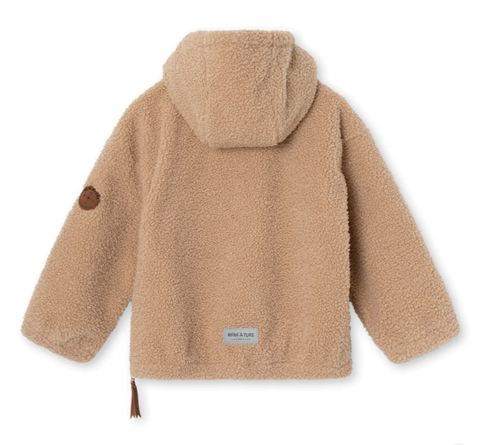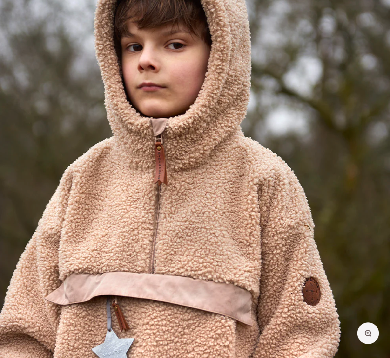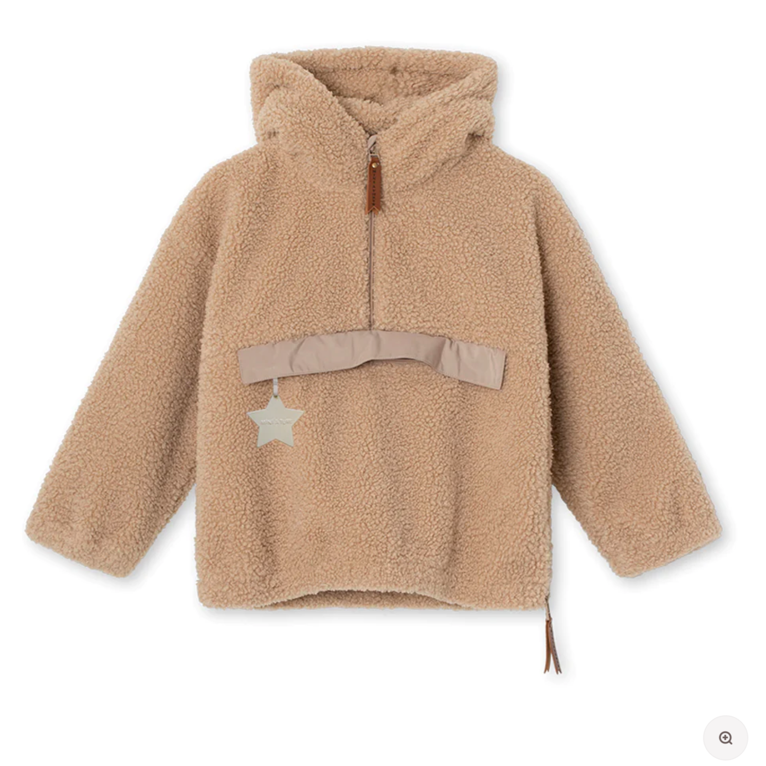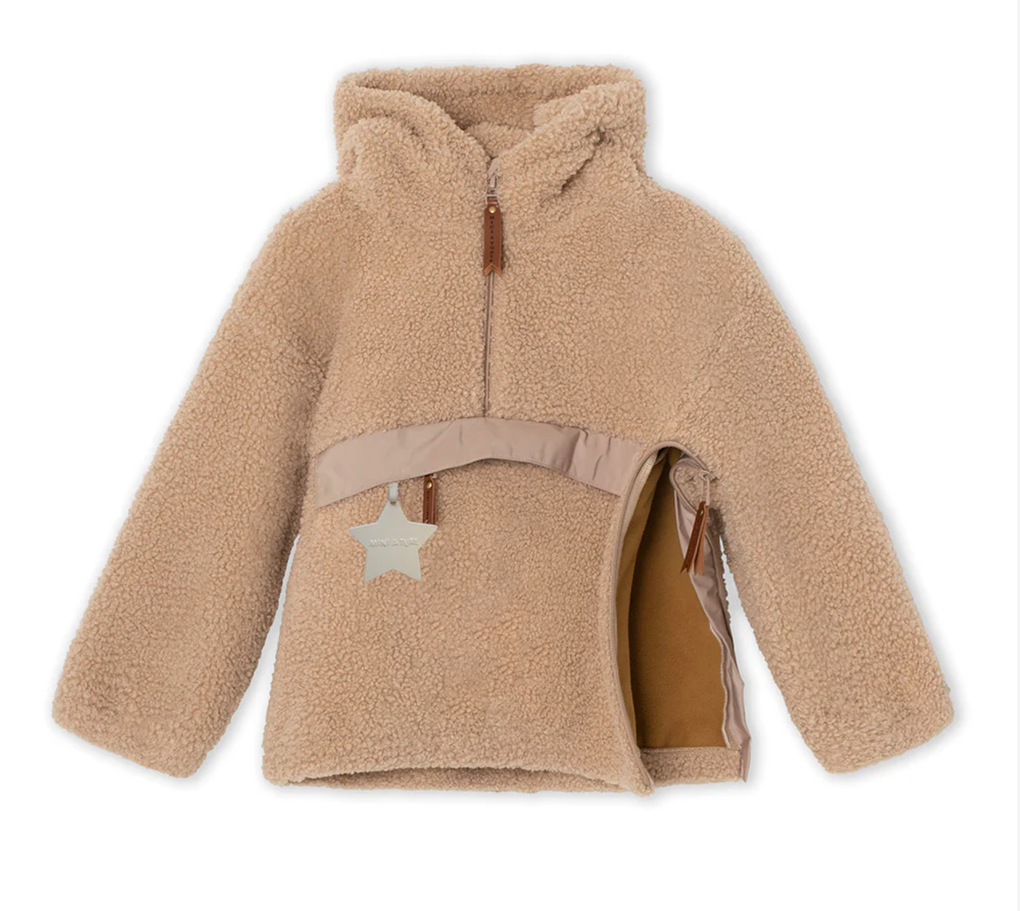 Anorac from MINI A TURE in soft teddy quality. Perfect as a jacket for transitional seasons or for the milder winter days. The anorac has a hidden pocket on the tummy and elastic at the bottom, shaping the anorac. The anorac can be opened at the neck, as well as on the side which makes it easy to take it on and off. The anorac is made of waterproof material, but it does not have taped seams.