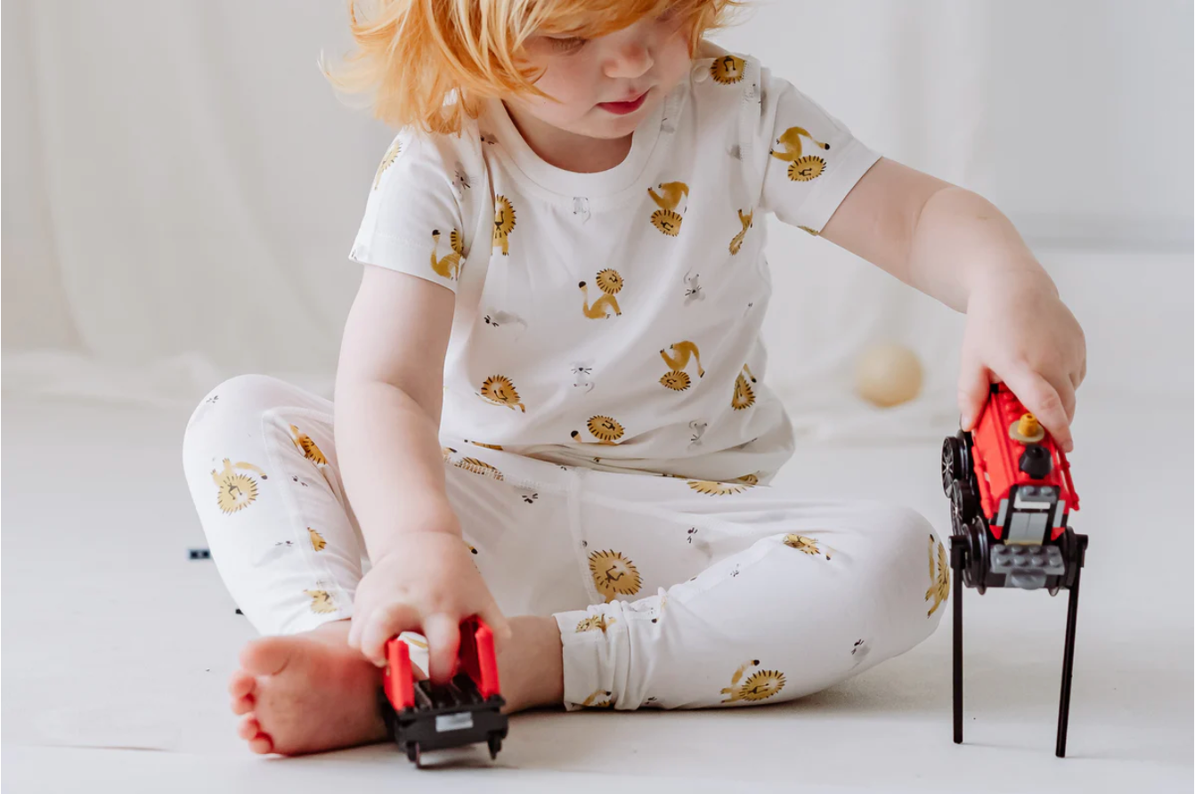 Leggings are a wardrobe staple that every child should have. These leggings are comfortable and stretchy making them perfect for indoor crafts or outdoor time on the playground. Made with a blend of bamboo, cotton, and a hint of spandex, they’re breathable, thermal regulating, and naturally hypoallergenic - perfect for little ones with sensitive skin. These leggings come in The Lion & The Mouse print, a part of our Aesop Fables collection, and adds a bit more fun to your little one’s wardrobe.