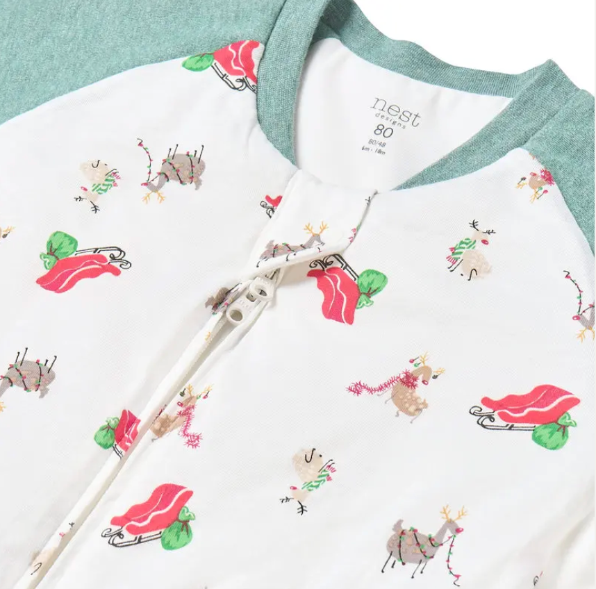 Bamboo Jersey Long Sleeve Footed Sleep Bag 2.5 tog Sleigh All Day