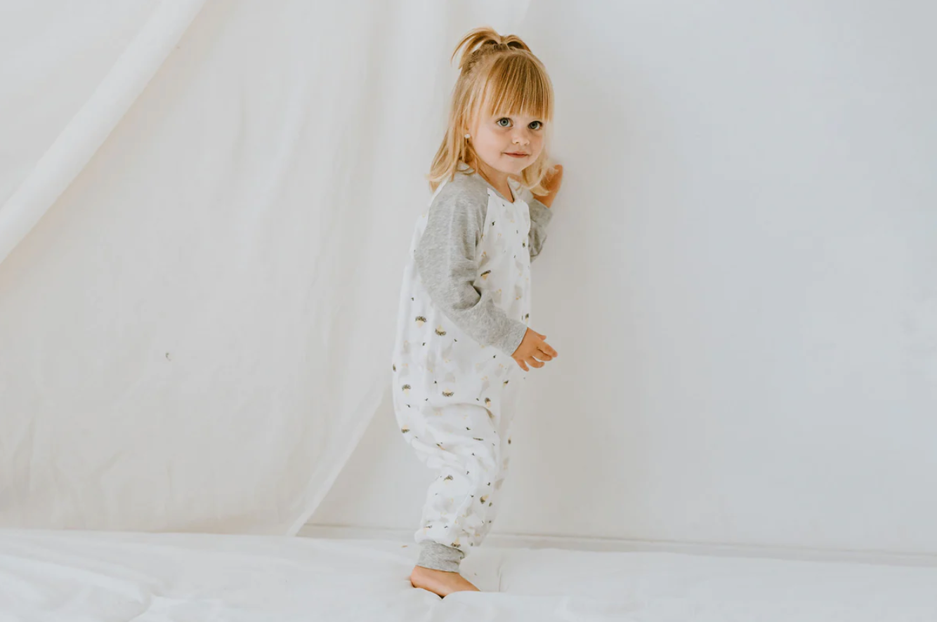 Our long sleeve footed sleep bag (previously called sleep suits) are perfect for the spring and summer weather. Made with our signature bamboo cotton blend, the footed sleep bag is breathable, buttery soft against your baby’s skin, and thermal regulating. Our bamboo is responsibly sourced and an eco-friendly fabric.