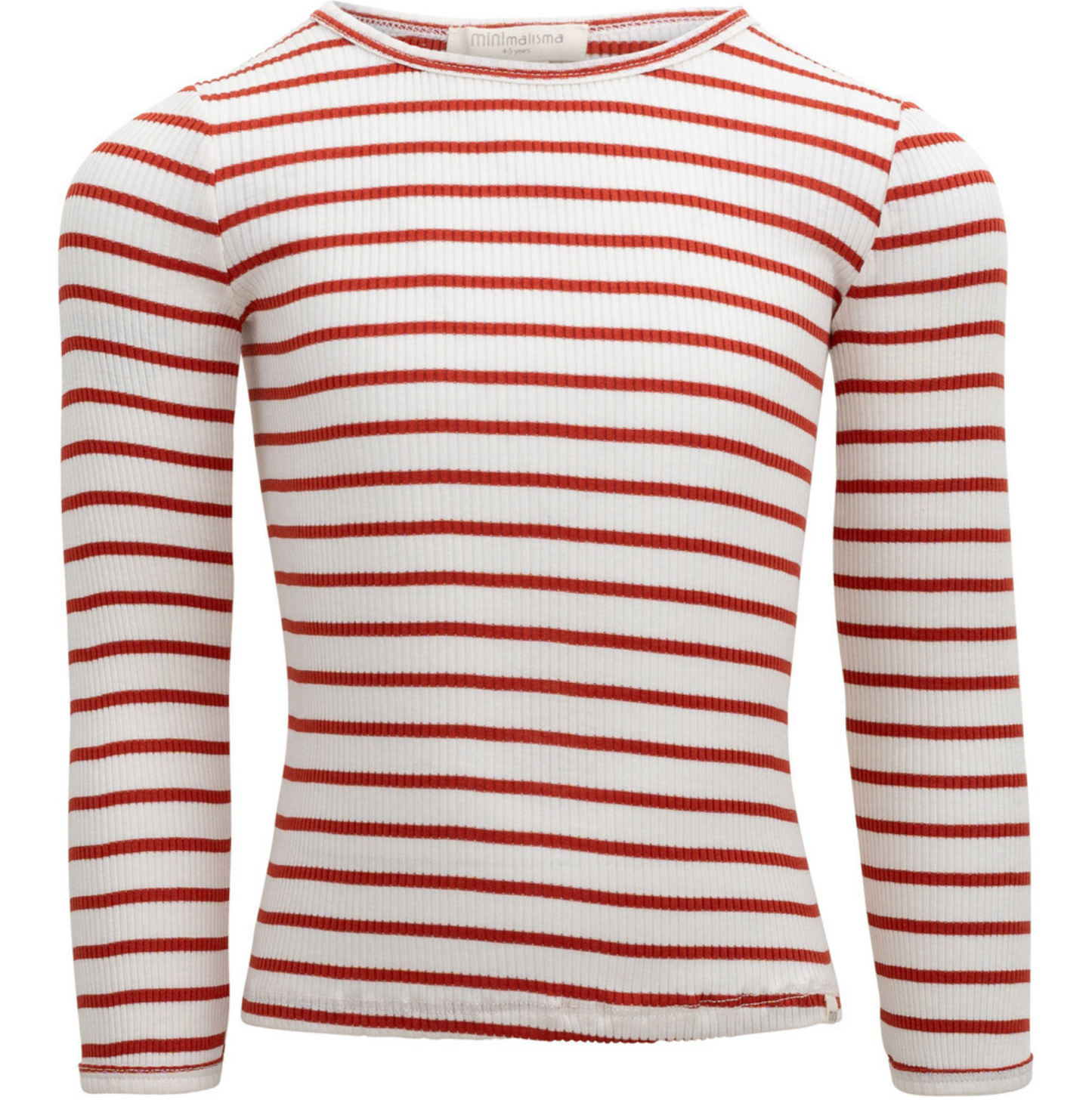 Seamless long-sleeve blouse in a soft silk-cotton blend with round-neck. Tight fit but highly flexible. Rose/Red colours have frilled hem while all other colours have a double stitch unisex hem.