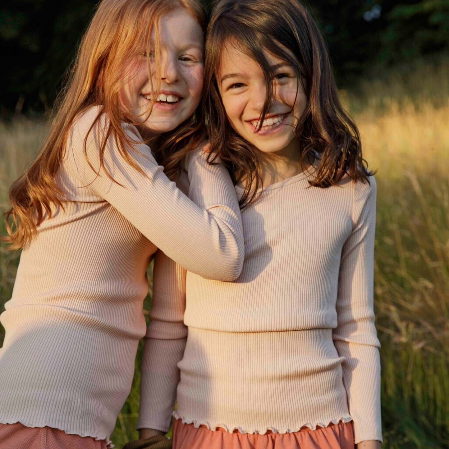 Seamless long-sleeve blouse in a soft silk-cotton blend with round-neck. Tight fit but highly flexible. Rose/Red colours have frilled hem while all other colours have a double stitch unisex hem.