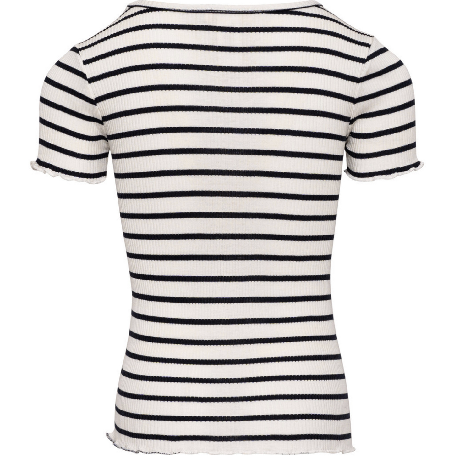 Seamless short-sleeve blouse in soft silk-cotton mix. The sleeve has small frills for a more girly look. Tightly fitted but highly flexible.