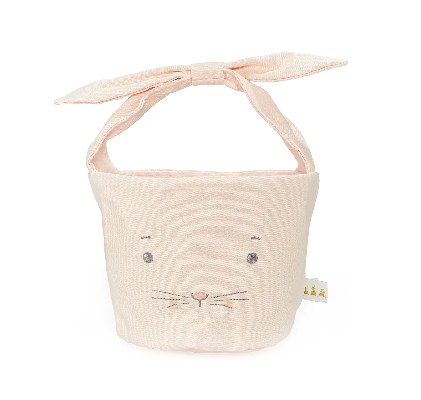 The perfect soft bucket to present the most perfectly delightful gift. Pink canvas with a sweet embroidered bunny face and floppy ears attached to the handle for easy personalization.