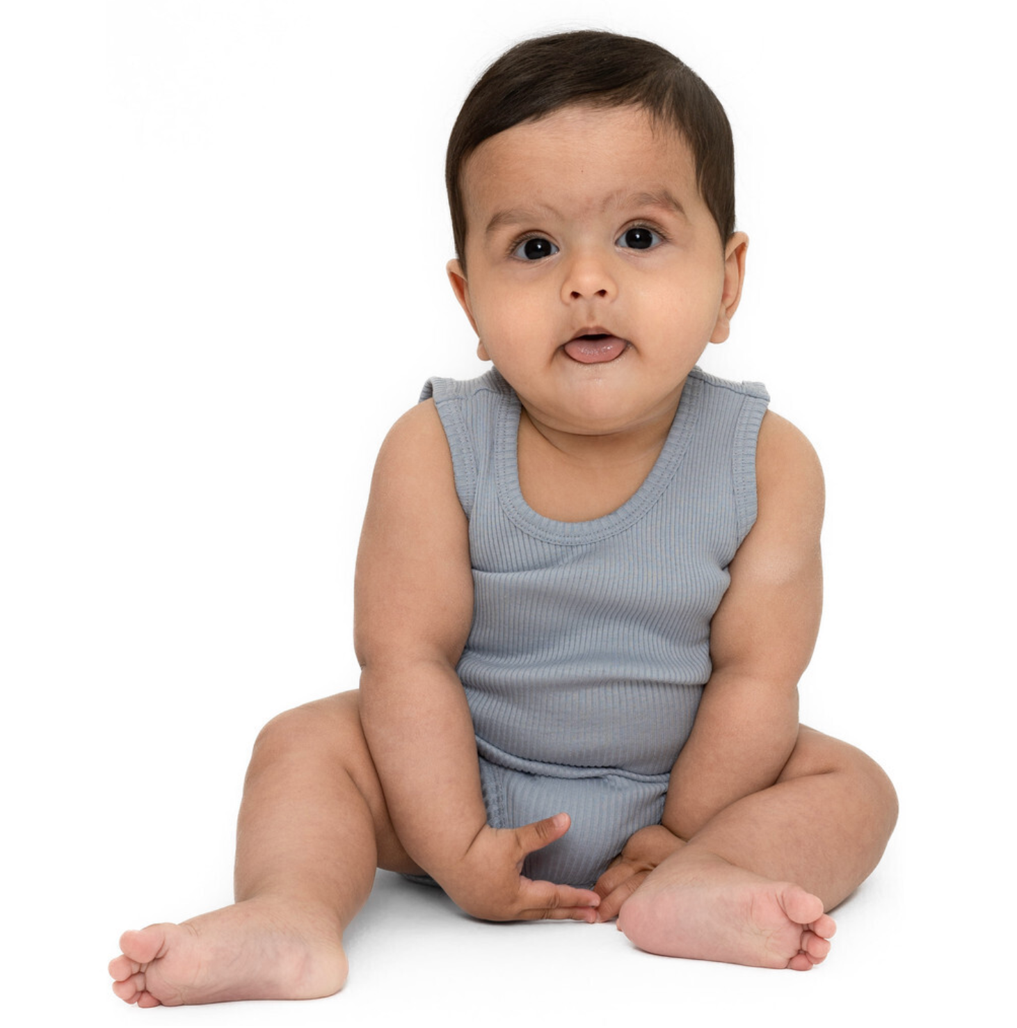 Seamless strap-body is crafted from a soft silk-cotton blend. The self-fabric finish around the neck-, arms-, and legs adds a unisex touch, making it suitable for both boys and girls. Nickel-free YKK snap buttons facilitate easy dressing.