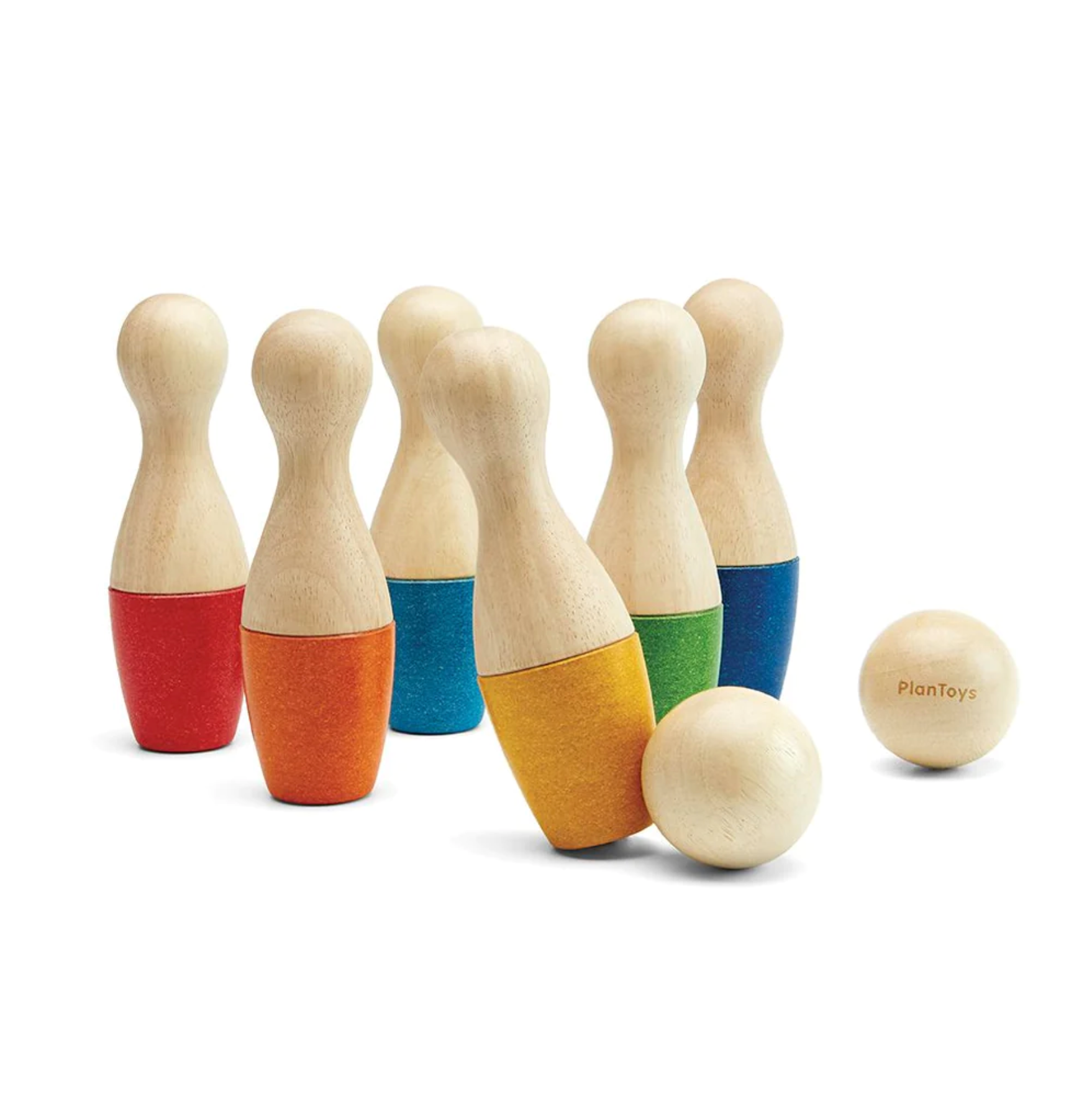 How many pins are you able to knock down in 2 shots? This Bowling Set features 6 pins and 2 balls for rolling. It's a perfect game to play with the whole family, friends or on your own. Develop hand-eye coordination, practice fine motor movements, strengthen concentration ability and have fun all at the same time! Available in two color tones — colorful and boho.