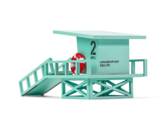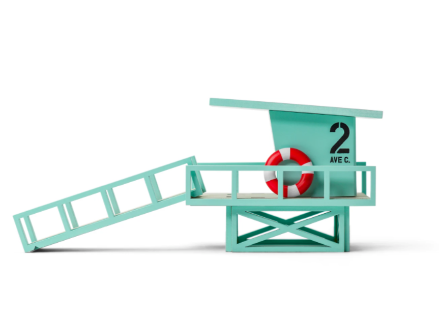 Ever since our STAC effort - and everyone kept asking for it, we kept pressing on, and now we can reveal the first concrete result. This here is a sweet accessory to any beach themed playset, or discerning shelf. Pastel-painted plywood and rubber lifesaver included. No sand included! Please note: Some assembly is required.