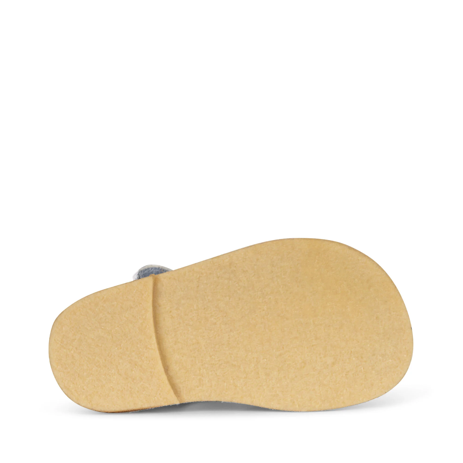 Summer sandal made in leather designed with velcro fastening. Adorned with patent leather cherries.