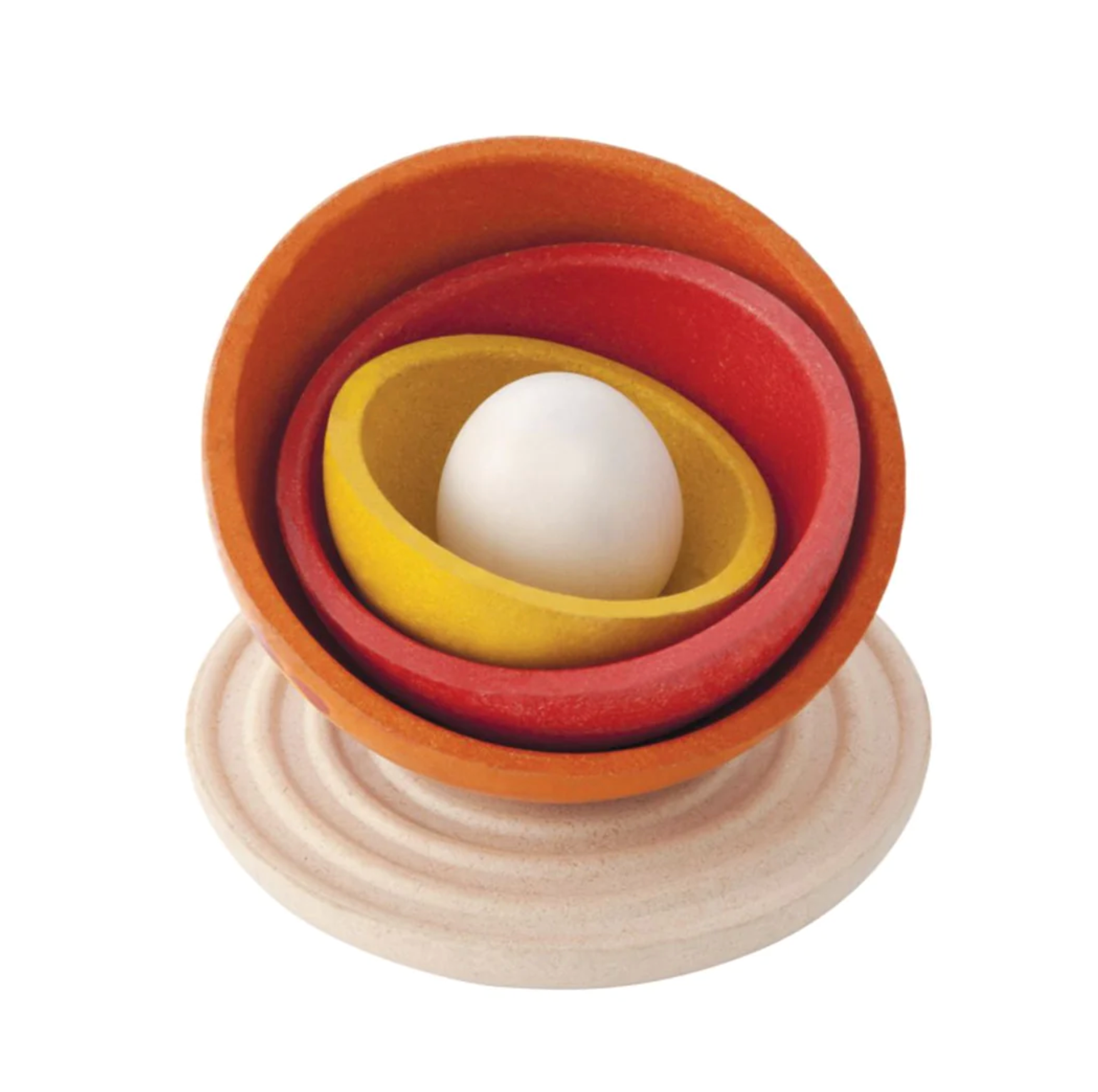 This basic nesting toy comes with a chicken theme. It consists of 4 pieces and a circle base. Children are able to learn about the sequencing, life cycle of a chicken and play in various styles.