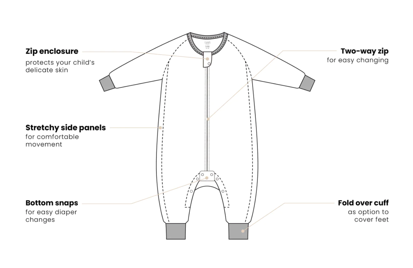 This lightweight footed sleep bag is perfect for little adventurers who love to roam and explore, but aren't quite ready for a big kid blanket. Our blend of bamboo and pima cotton is featherlight and breathable—ideal for keeping bub cool and comfortable on warmer evenings. Designed with stretchy side panels for added movement, and fold over ankle cuffs to cover those tiny toes, your mini mover will stay cozy and covered all night long.