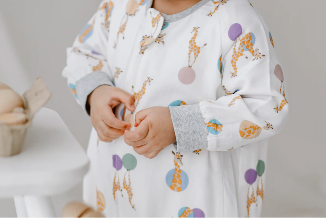 Long Sleeve Footed Sleep Bag 0.6 TOG (Bamboo Pima) - Giraffe Shapes (6-18M Only)