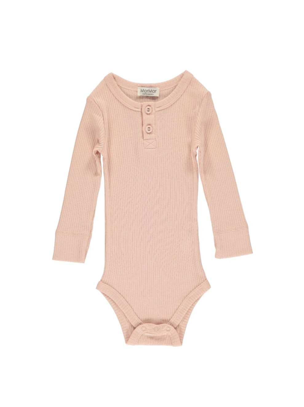 Long-sleeved bodysuit with bottons, the bodysuit is closed with snap bottons at the crotch for easy changing.