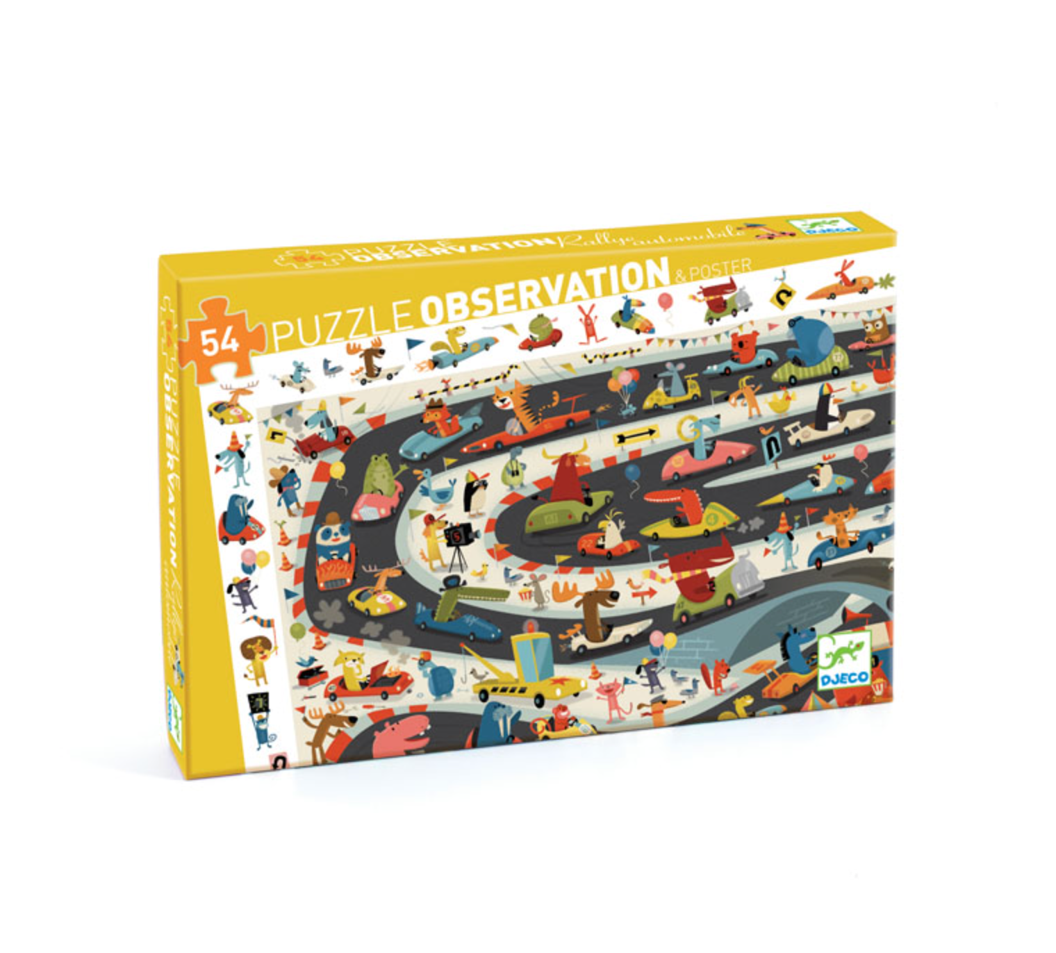 DJECO Automobile Rally 54pc Observation Jigsaw Puzzle + Poster