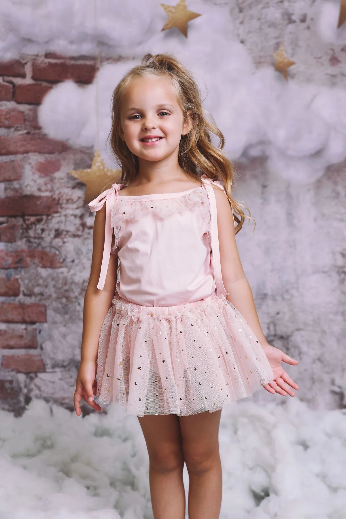 DOLLY® COTTON TOP WITH STARS & MOON ⭐️ 🌙 TULLE BALLET PINK