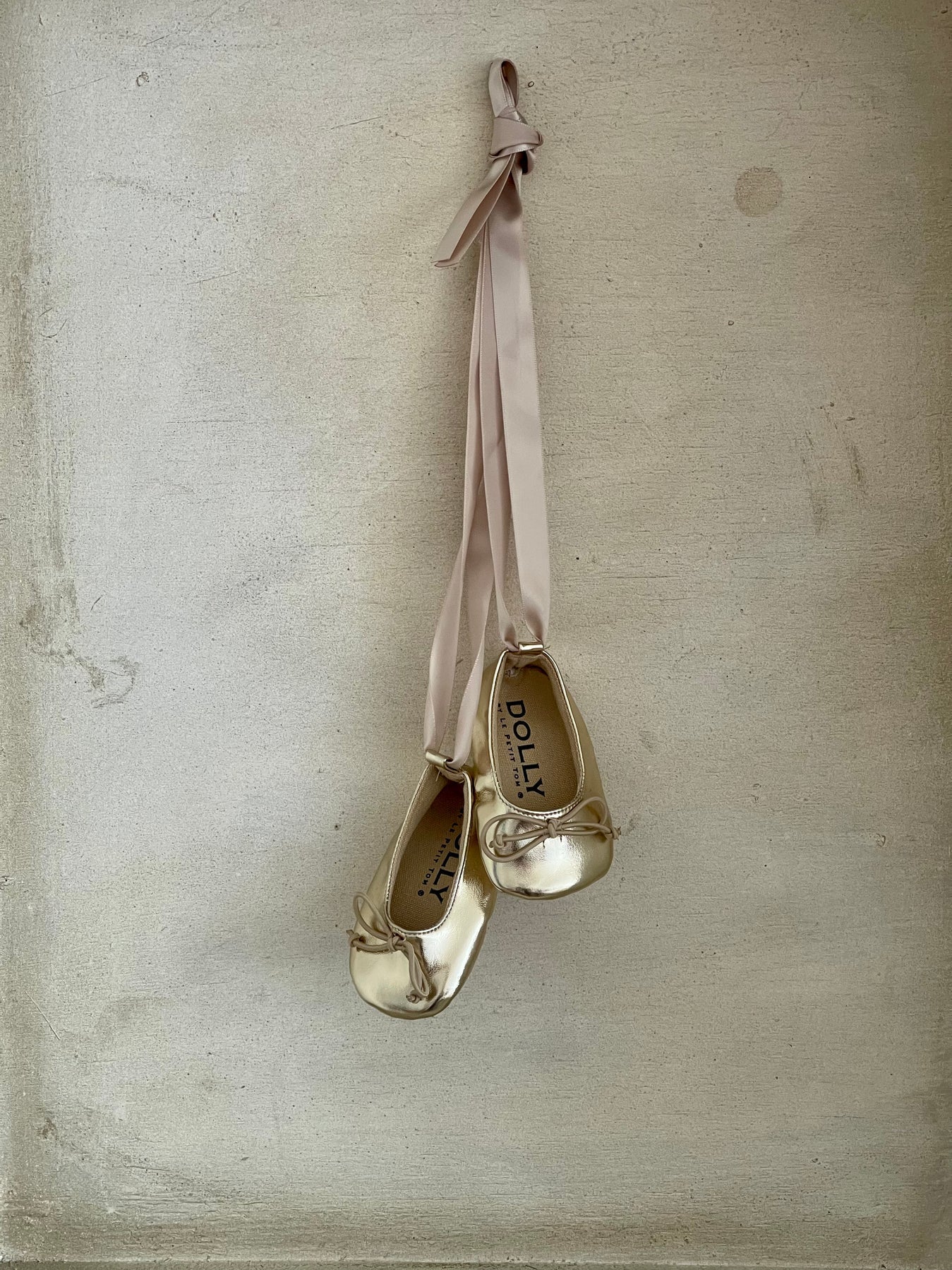 DOLLY BY LE PETIT TOM ® BABY BALLERINAS WITH RIBBONS GOLD