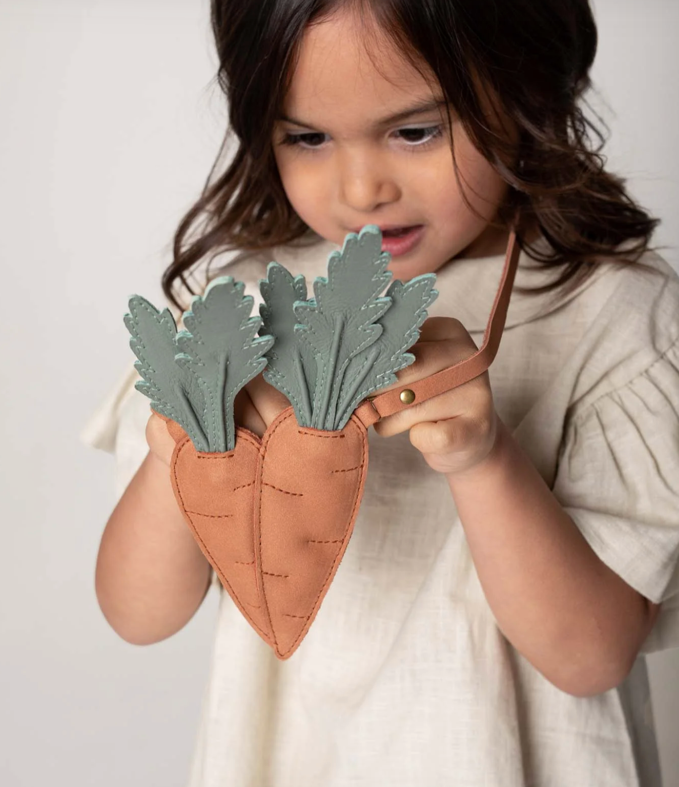 Veggie wonder! Add a summery touch to your little one's wardrobe this season with the Chaeso Purse—a playful accessory featuring a unique carrot design. Carefully crafted from 100% premium leather. Adjustable shoulder strap and zipper at the back.