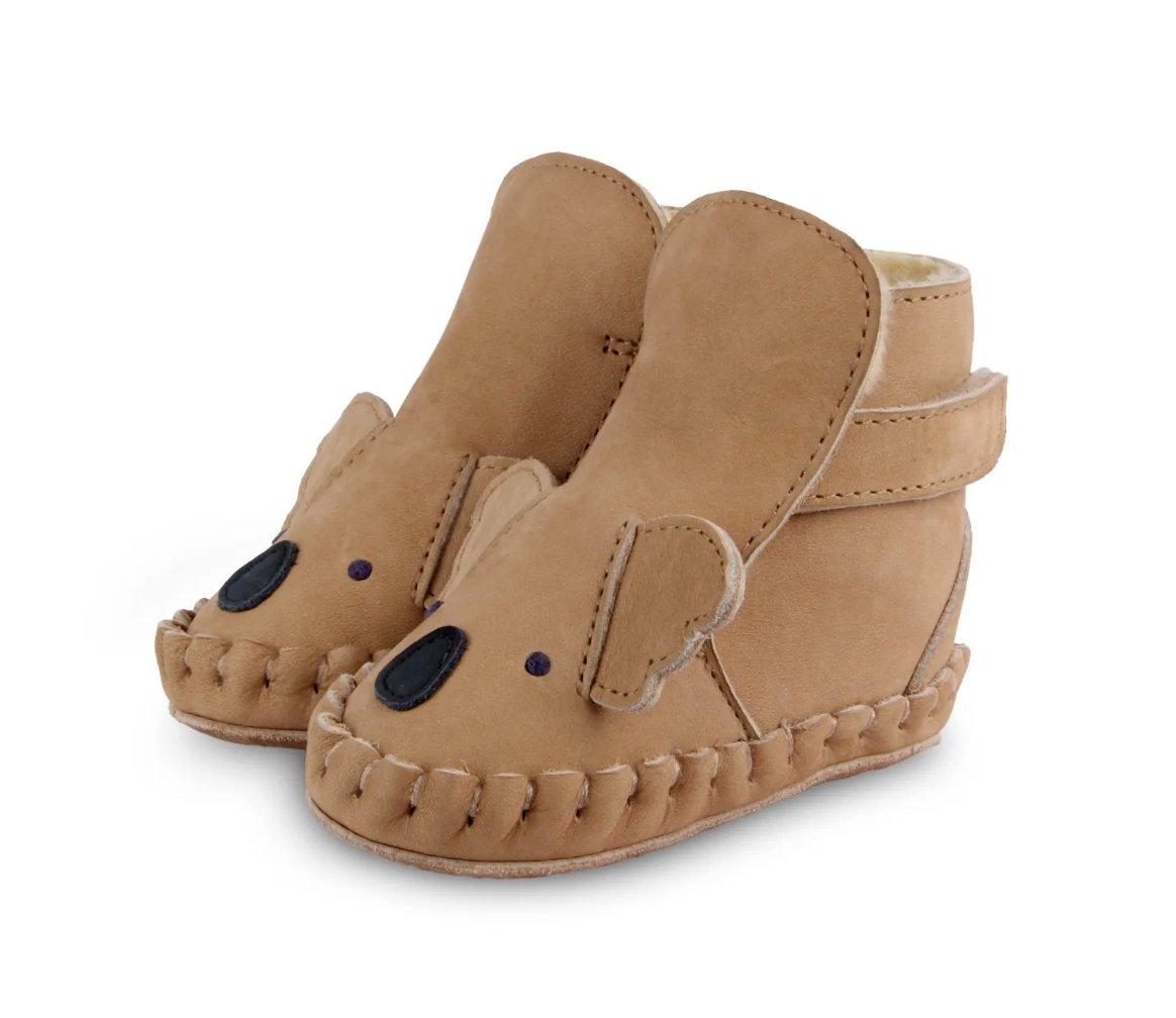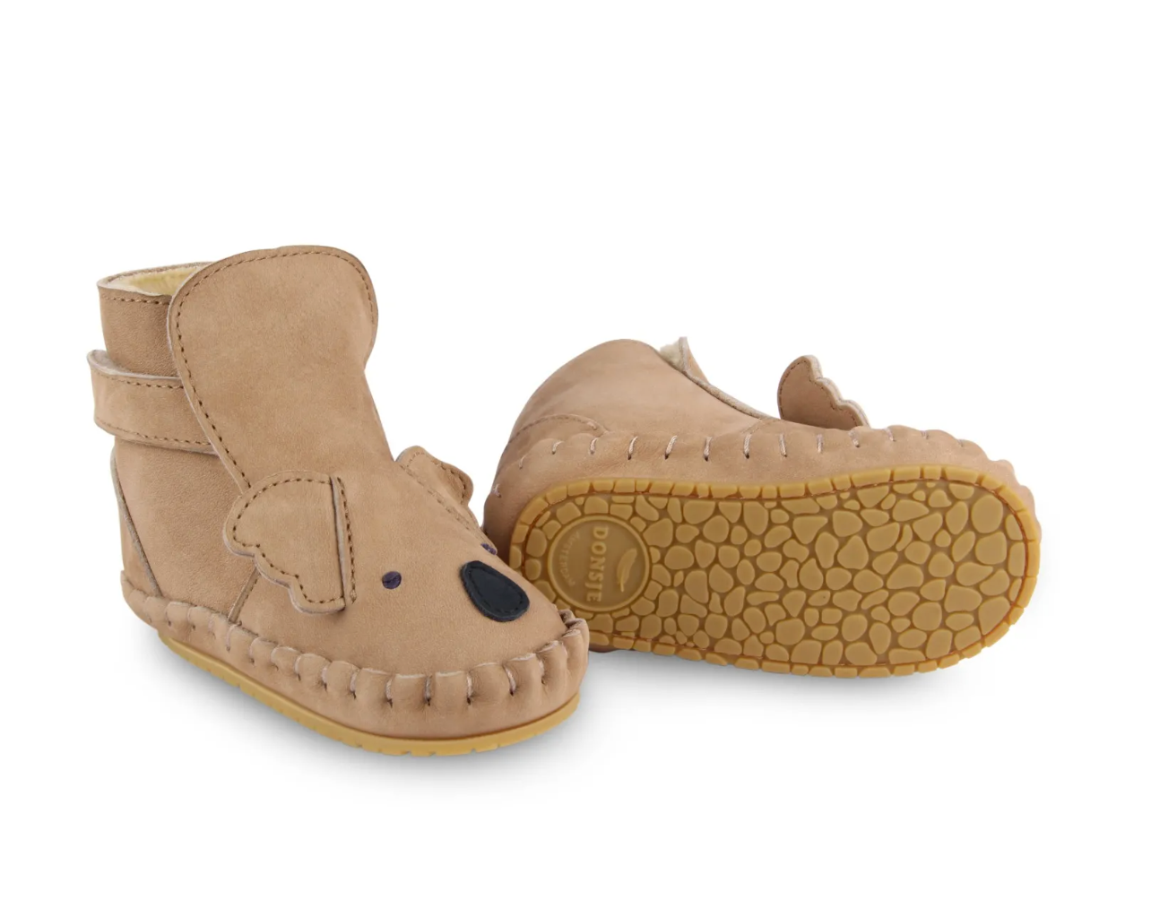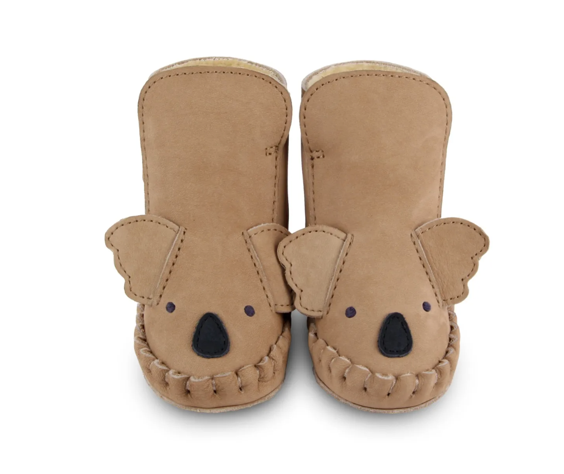 Koalafied cuteness! These warmly lined boots have a wide entry to easily fit every foot! They are a healthy basis for all little feet with an easy velcro fastening. Our classic Donsje characters on the toe of the shoe create an instant cute-factor overload! The Kapi Lining are the perfect, well-fitting shoes for those long-awaited first steps! Delivered in a cute gift bag.