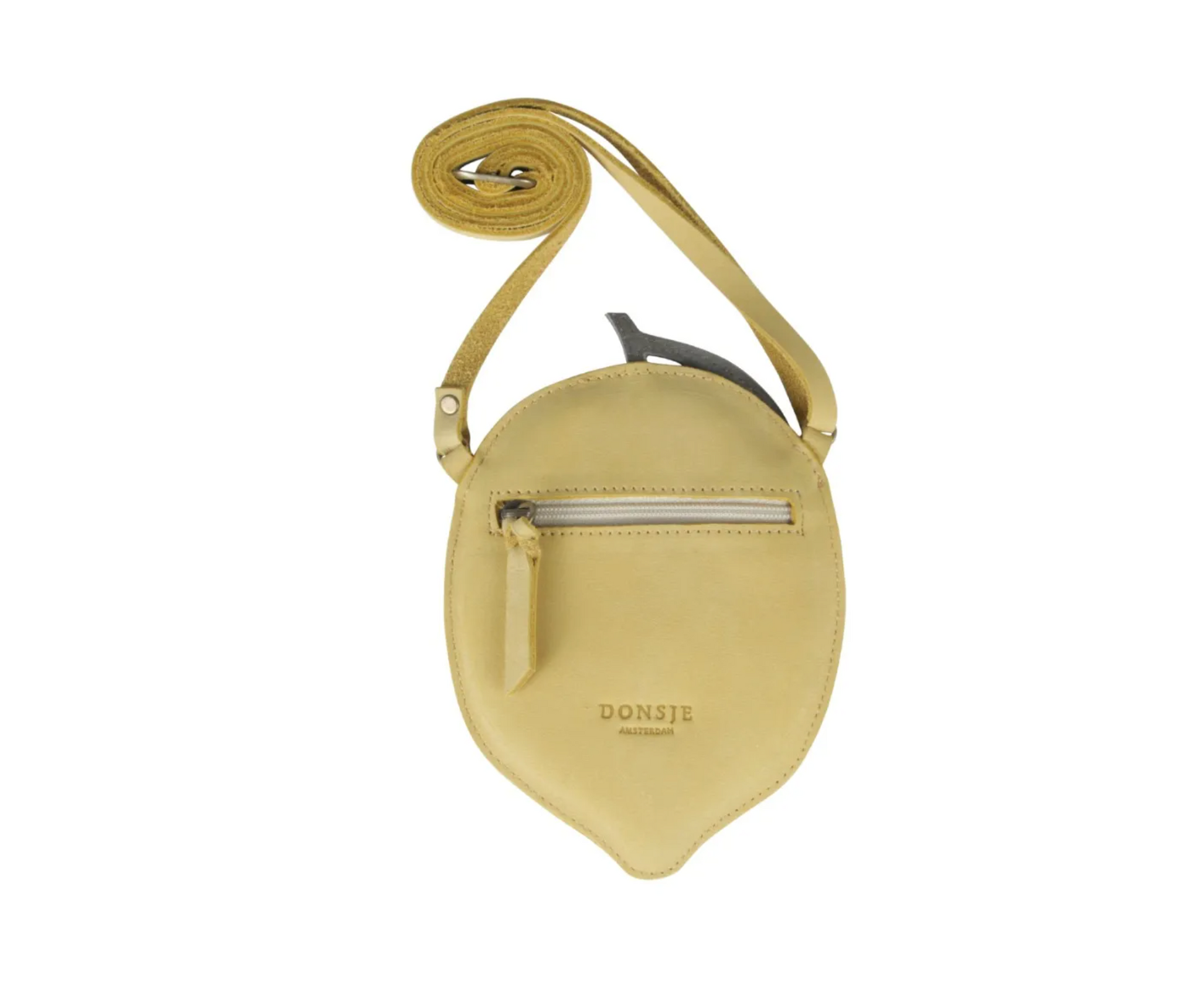 Squeeze the day! This adorable Nanoe purse will be your little girl's favourite summer accessory. Shaped like a juicy lemon, the Nanoe is a true eye-catcher. An adjustable leather strap and a handy zipper at the back make wearing this purse easy and fun. A lovely 100% leather accessory to hold all the most precious little treasures.
