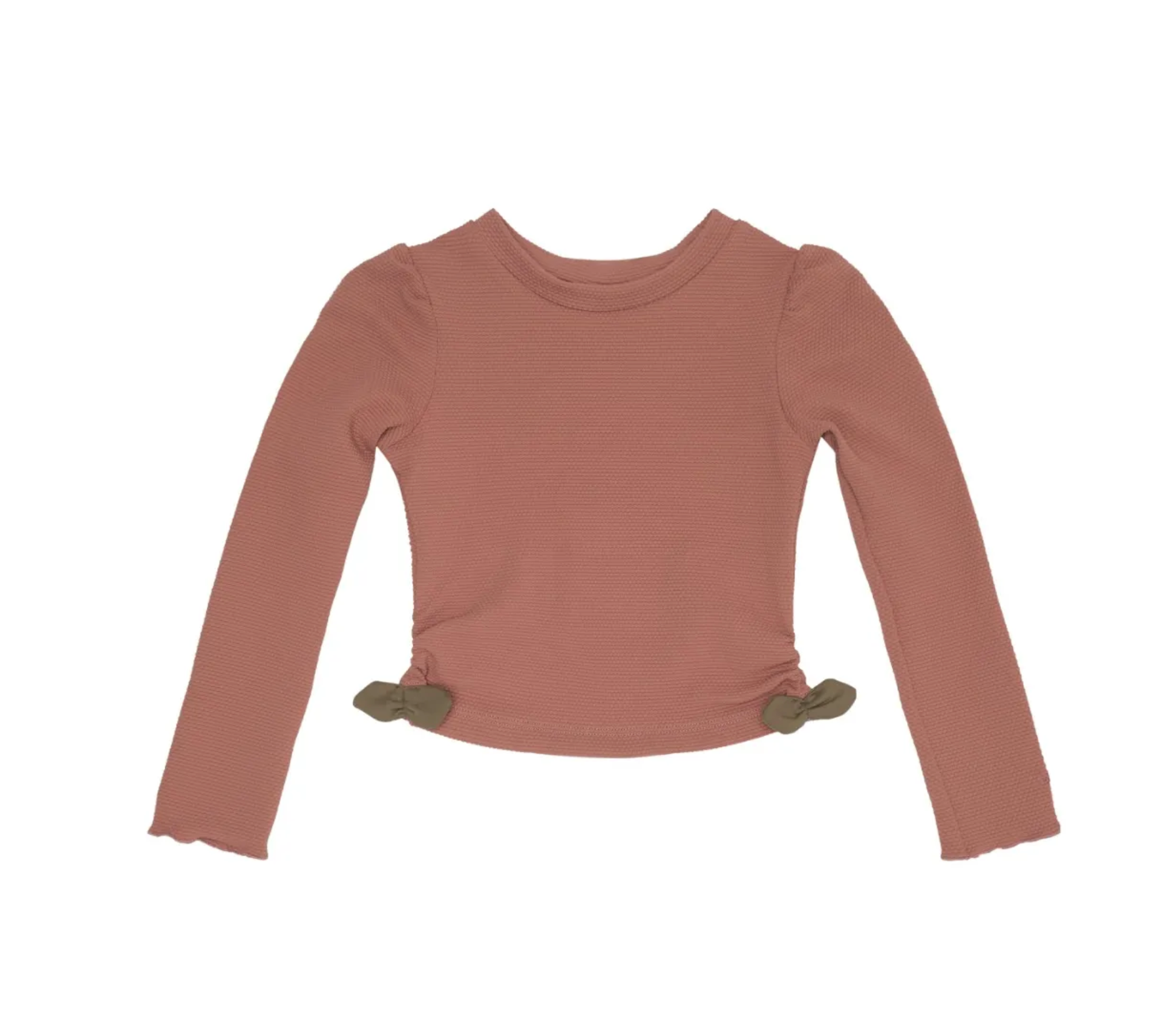 You're apple-utely adorable! This pretty swim shirt will keep your little one safe from the hot summer sun in style. The shirt features an embroidered Donsje logo and smocked detailing. Match the Nia swim shirt with the Sisi swimming briefs.