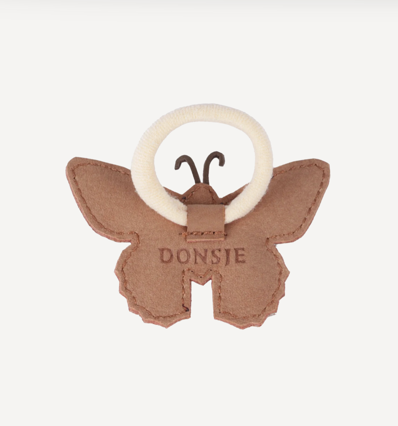 Colourful wings! Start the summer season with the Zaza Sky Papillon Hair Tie. The signature Donsje characters add playfulness and joy to any outfit. Made from 100% metallic leather, the elasticised tie will keep locks in place.