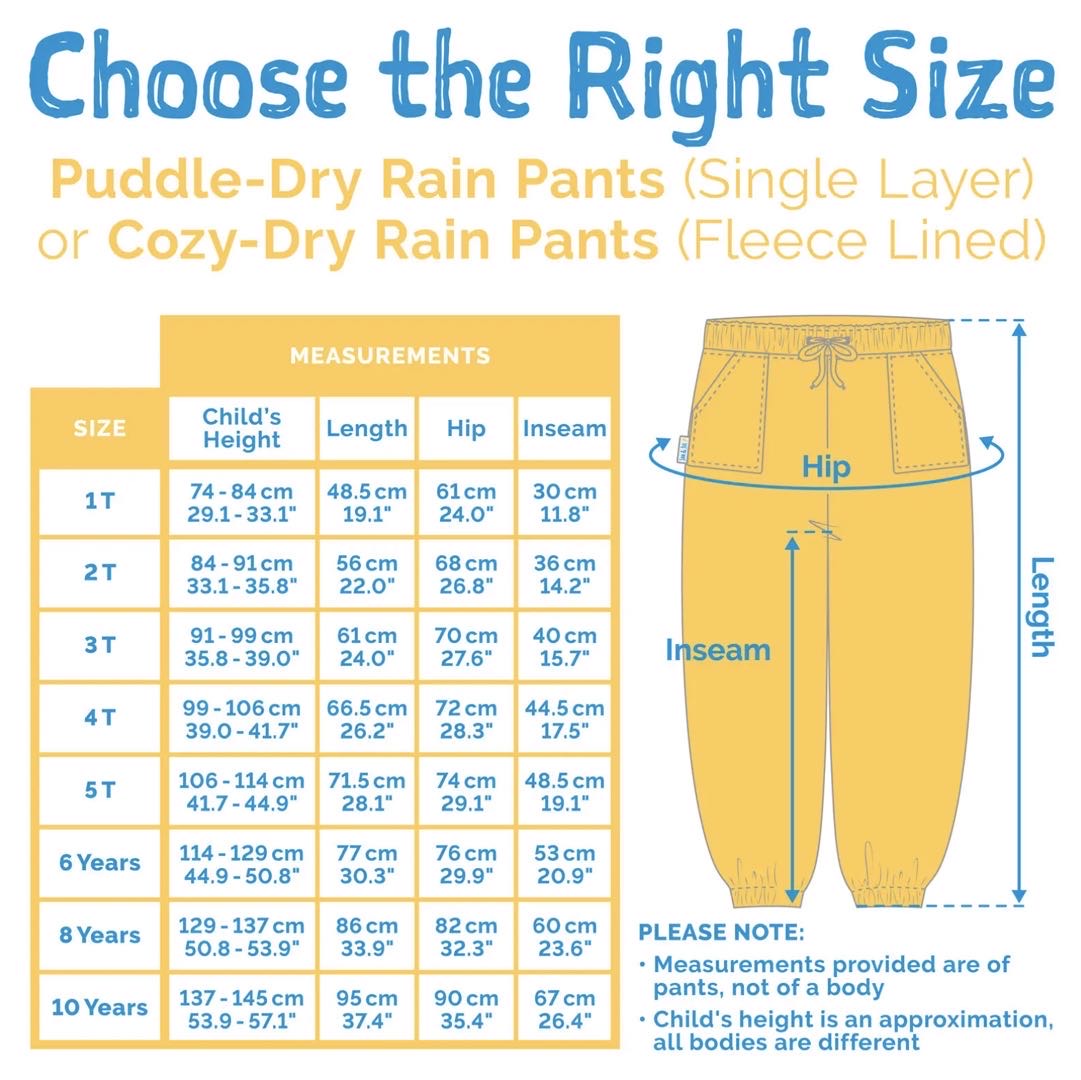 Kids Fleece Lined (Cozy-Dry) Rain Pants | Dreamscape