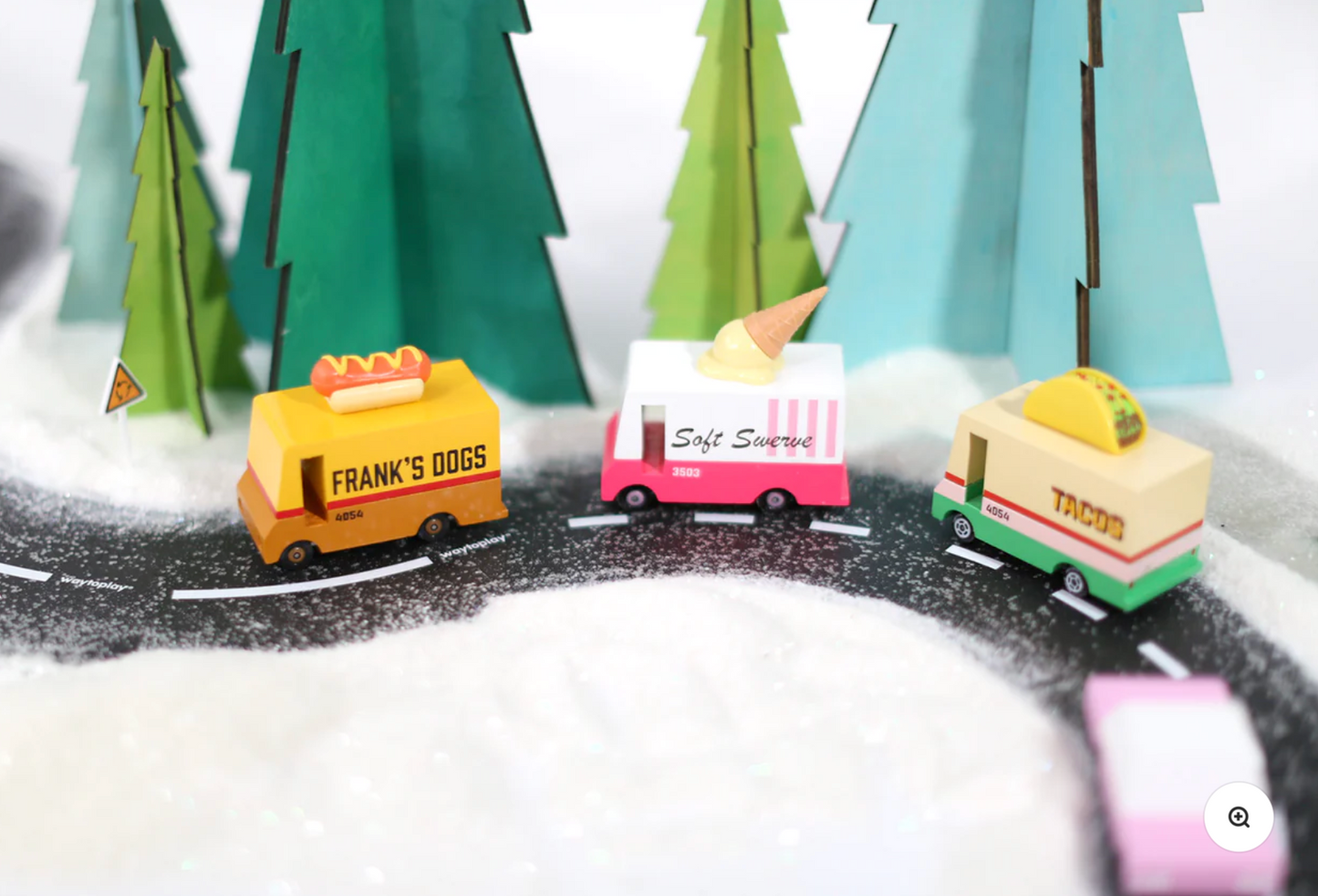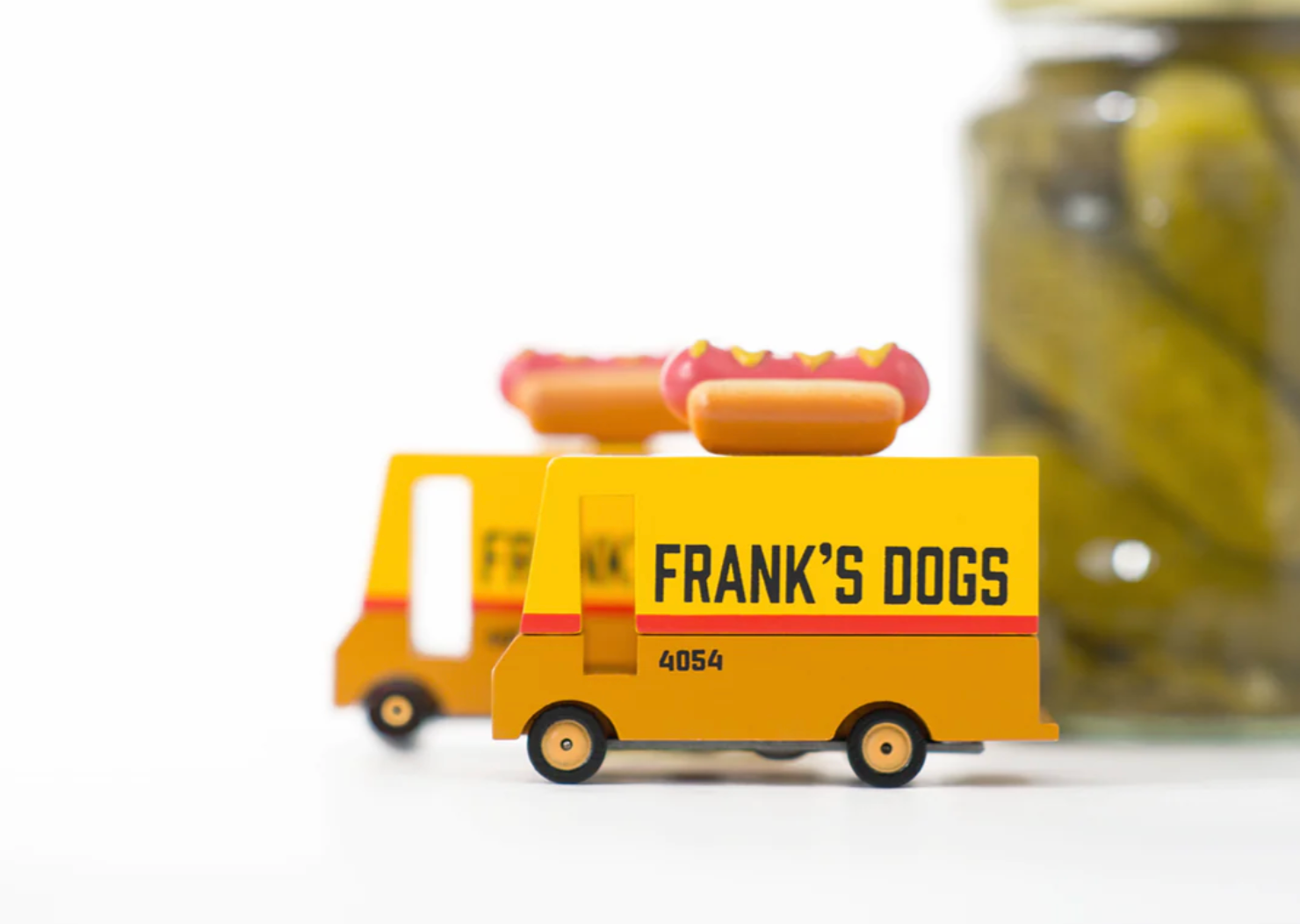 Nothing says NYC like a hot dog stand. As New Yorkers, we must pay tribute to the hot dog – it's the quintessential New York street food. Our hot dog truck is a minimalist, design-focused, vehicular interpretation of the hot dog stand with a mustard-yellow top and a perfectly toasted base. Don't worry, we skipped the dirty water.