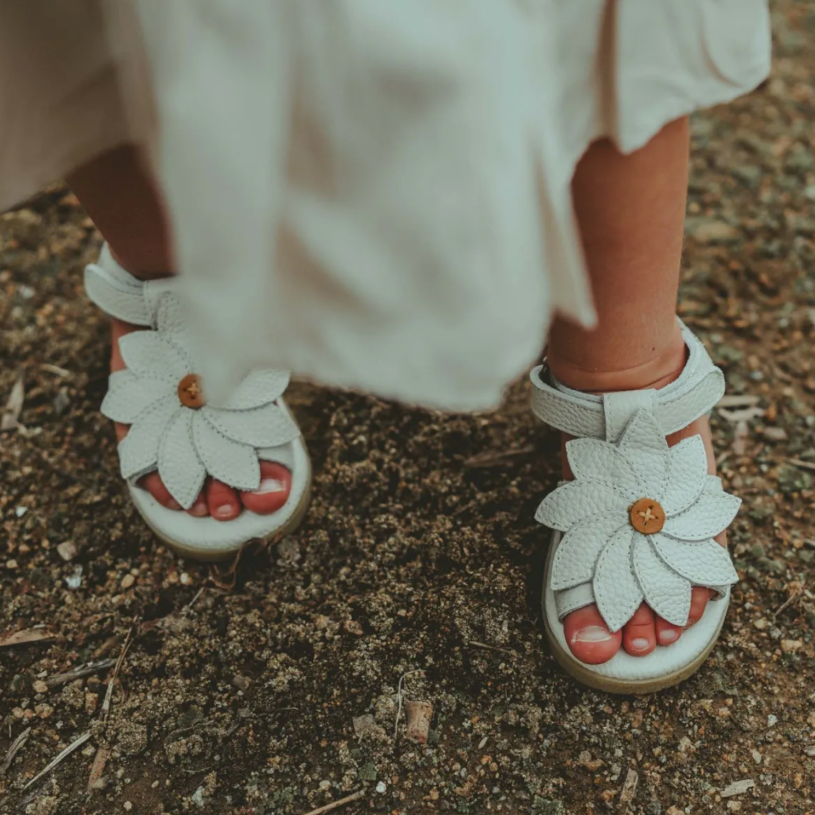 Happy Daisy! With these handmade sandals your little one will bloom! These beautiful detailed sandals are true eye-catchers and will steal the show. The sandals have an adjustable strap on the back so they stay on wherever your little one goes. Perfect fit and very comfortable!