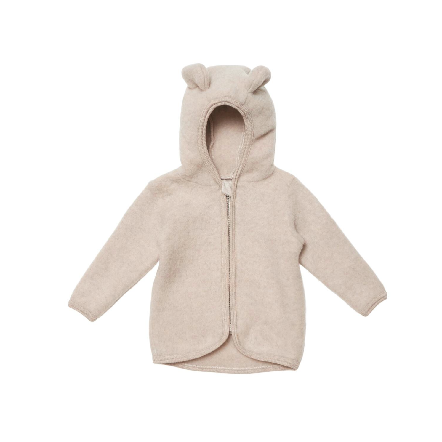 Cute jacket with hood with ears from HUTTELIHUT. The jacket has a front zipper and is made in the softest wool fleece. Perfect as a transitional jacket or as an extra layer on cold days.