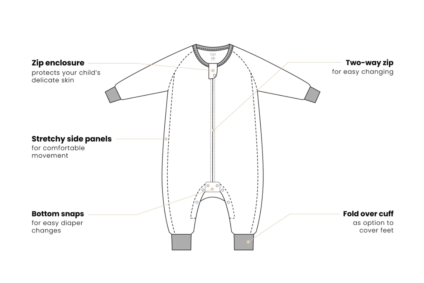 This lightweight footed sleep bag is perfect for little adventurers who love to roam and explore, but aren't quite ready for a big kid blanket. Our blend of bamboo and pima cotton is featherlight and breathable—ideal for keeping bub cool and comfortable on warmer evenings. Designed with stretchy side panels for added movement, and fold over ankle cuffs to cover those tiny toes, your mini mover will stay cozy and covered all night long.