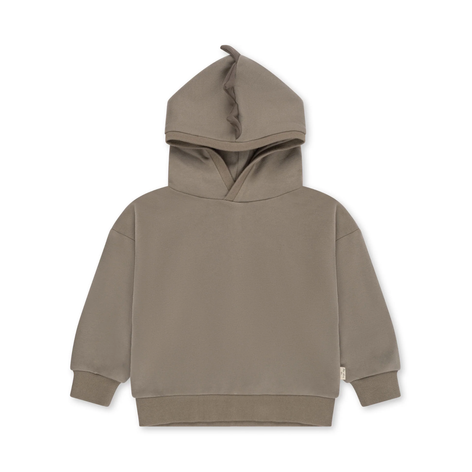 Hoodie made in 100 percent organic cotton. Designed with ribbed endings and slightly dropped shoulders for a relaxed fit. Choose between hoodie with bunny ears or dinosaur spikes.