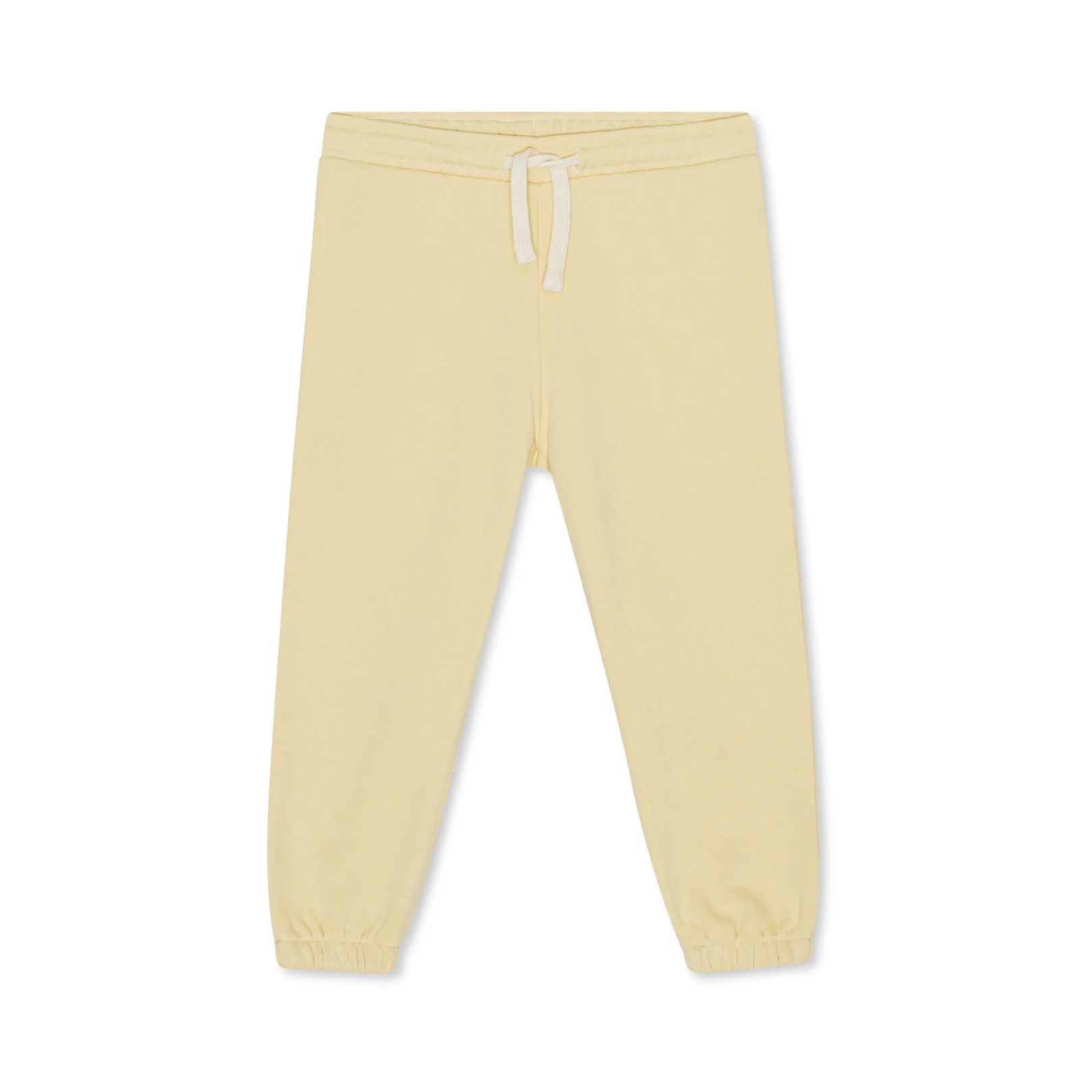 Soft sweatpants made in 100 percent organic cotton. Designed with an elastic drawstring waistband, ribbed cuffs at the bottom, two front pockets and one back pocket.
