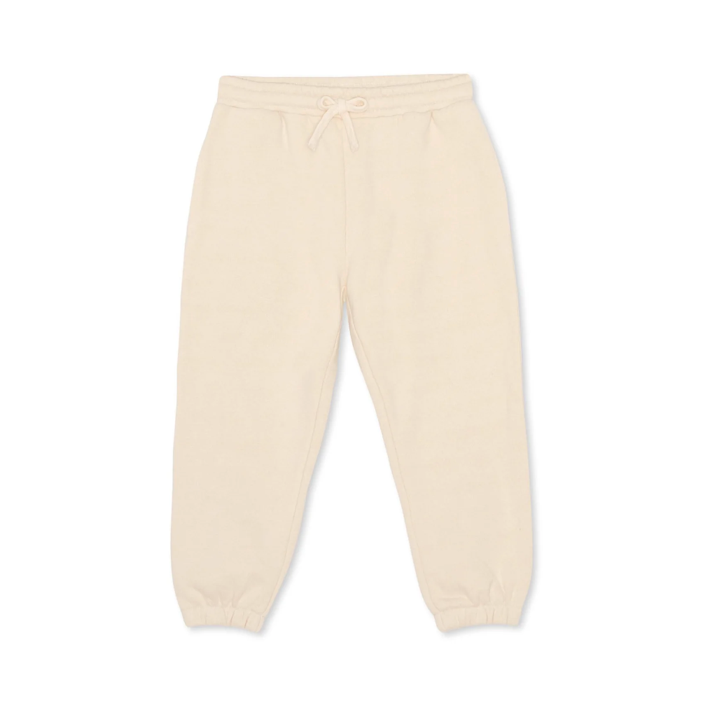 Soft sweatpants made in 90 percent organic cotton and 10 percent polyester. Designed with an elastic drawstring waistband, ribbed cuffs at the bottom, two front pockets and one back pocket.