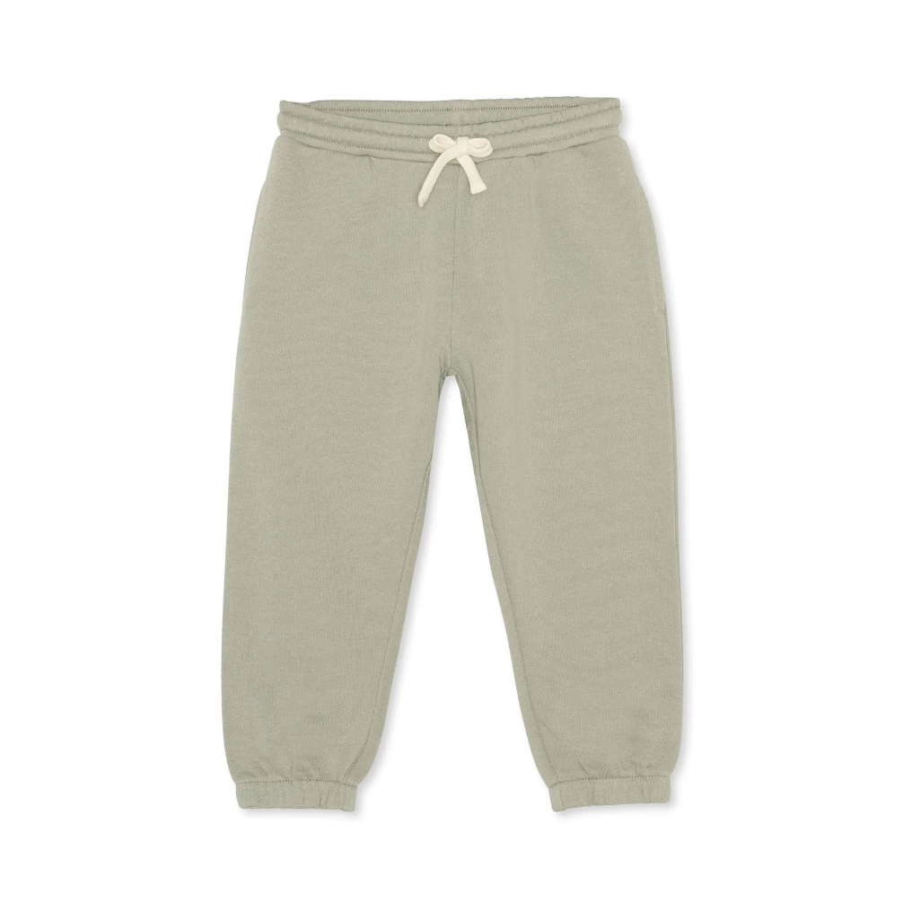 Soft sweatpants made in 90 percent organic cotton and 10 percent polyester. Designed with an elastic drawstring waistband, ribbed cuffs at the bottom, two front pockets and one back pocket.