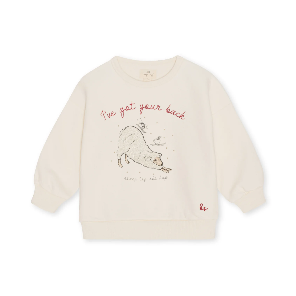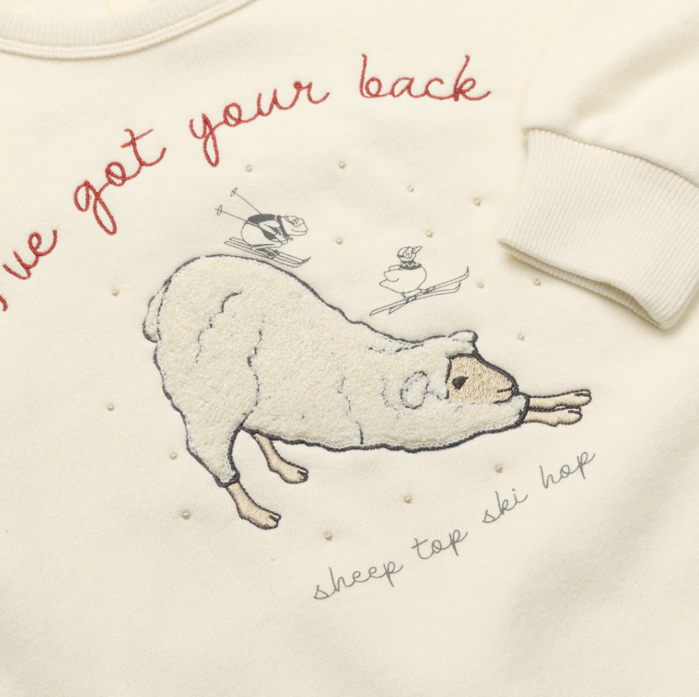 Sweatshirt made in 90 percent organic cotton and 10 percent polyester.