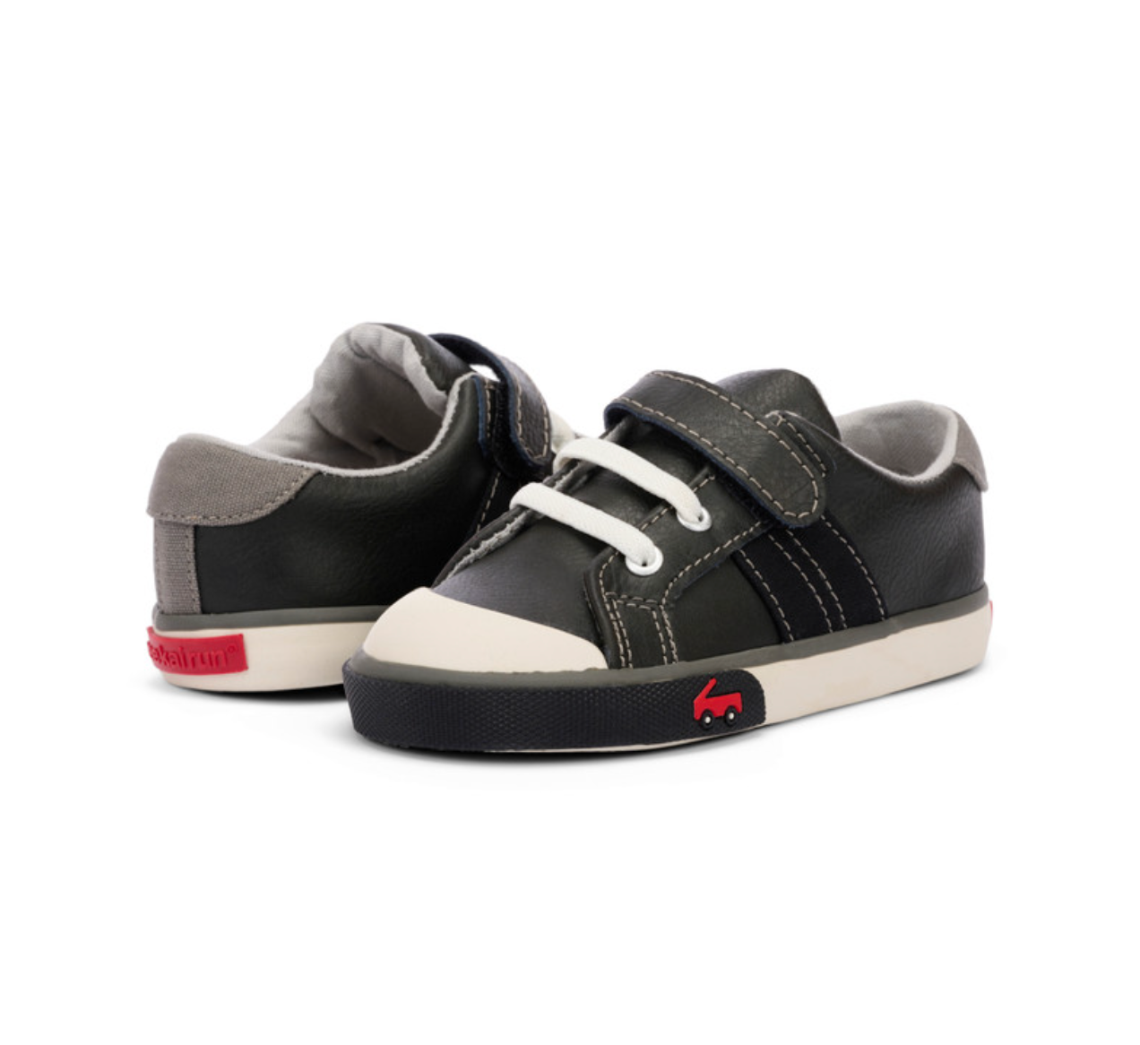 Built for any and all adventures, the Lucci Black Leather/Gray sneaker for boys features a flexible leather upper with gray accents. The rubber outsole’s herringbone lug pattern provides great traction for play.