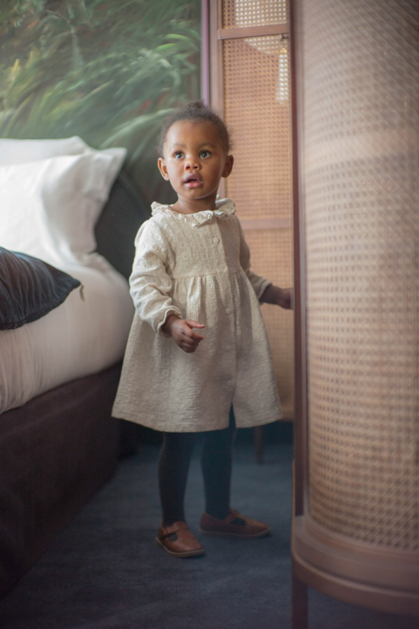 The ANEMONE Dress looks good a bit loose. Elegant with it’s delicate ruffle collar.