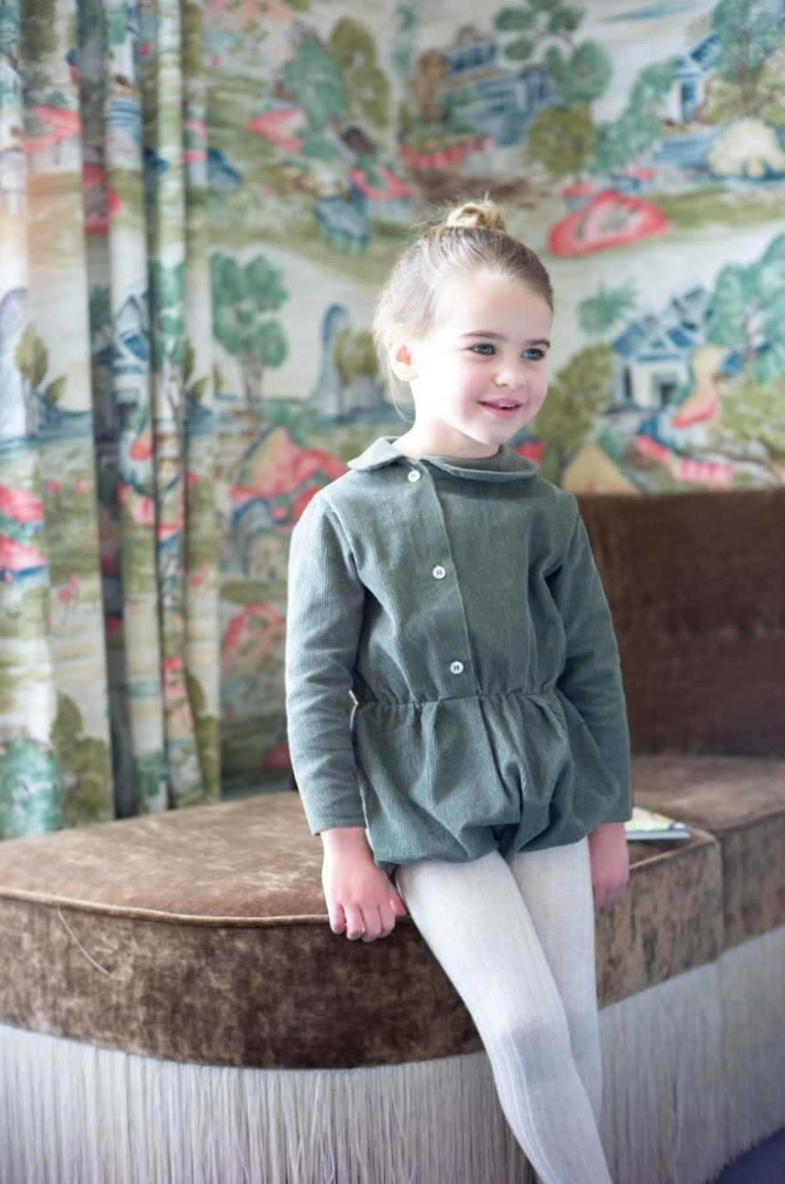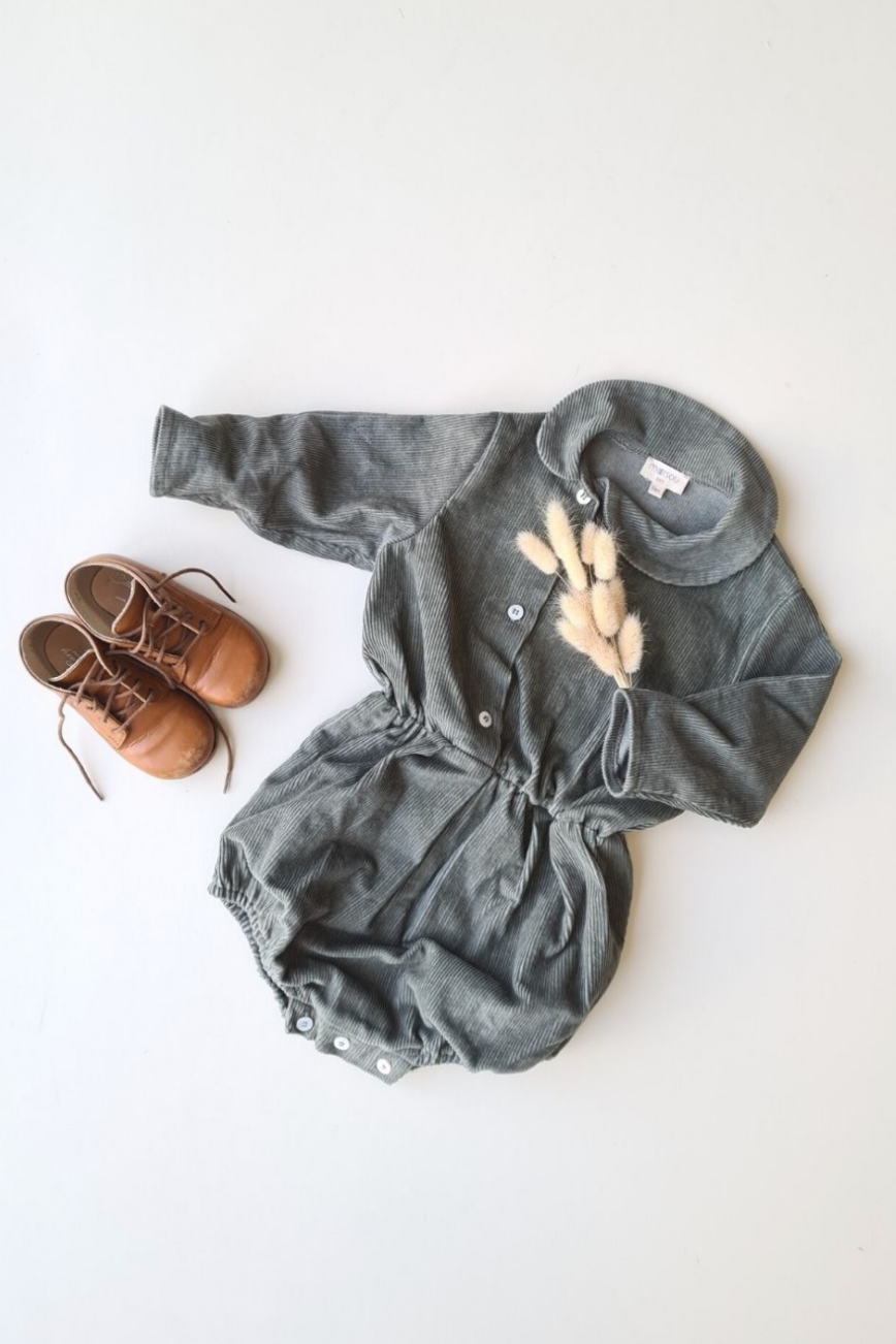 An asymmetric Peter Pan collar for our new unisex signature Romper REIDI. Elasticated waistband. Buttons at the crotch make changing easy. The Romper size normal, we advise you to take your child's usual size