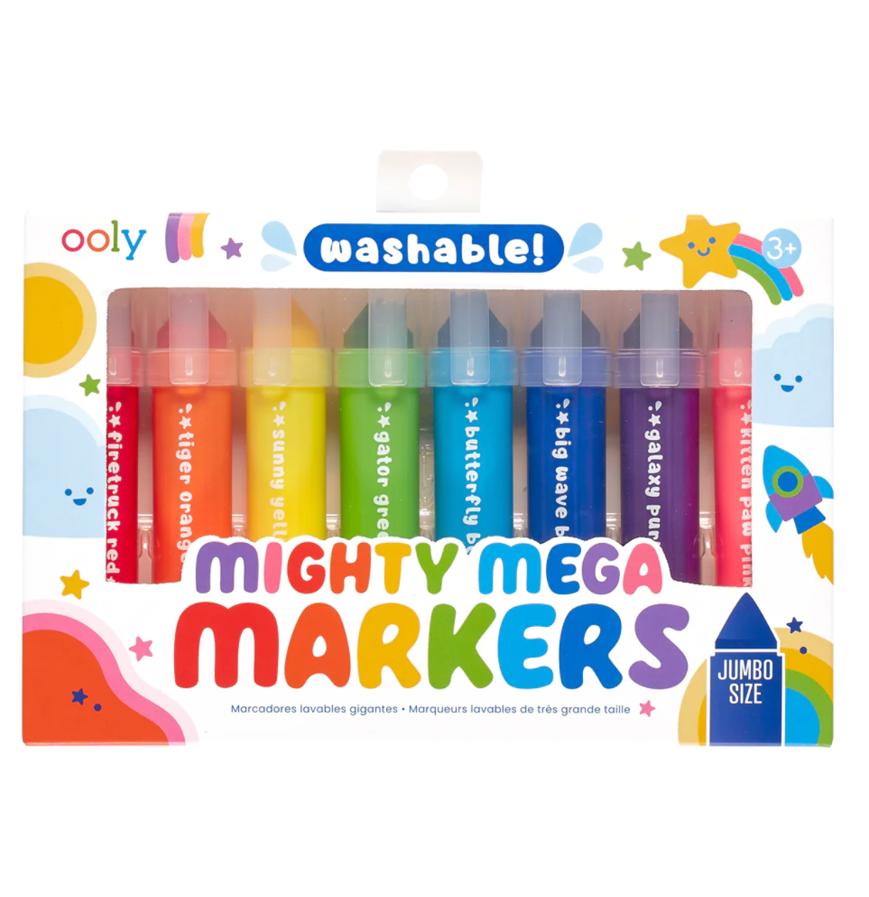 When your little one is ready to make their big mark choose Mighty Mega Markers. These 8 vibrant washable markers are chunky and easy for little hands to hold. The triangle shaped pointed tip allows drawing thin and thick lines for the young creator. Jumbo sized and brilliantly colored markers lend themselves to the new and small artists just beginning their artful journey. With 8 vivid colors that are washable too, Mighty Mega Markers are the perfect chunky starter marker. Creating refrigerator masterpieces will be easy with the triangle angled tip making coloring thick or thin lines a breeze. Pair the markers with a sketchpad for the perfect little artist gift.