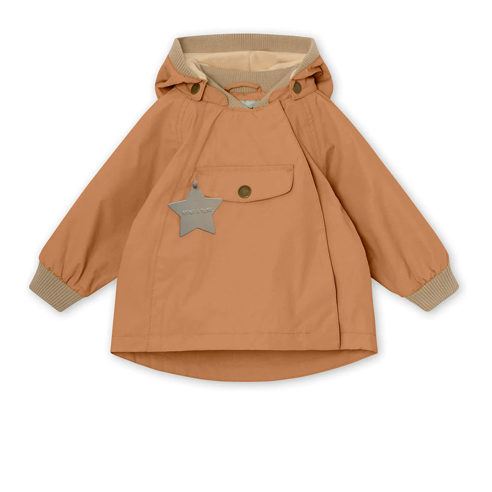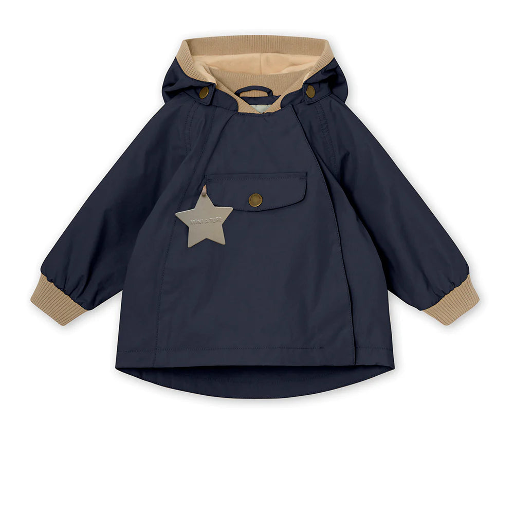 Wai Jacket for the little ones. This unisex jacket has a recognizable pointed hood, an oversized front pocket and a zipper on the left-front side. It has an adjustable waistline to ensure a better fitting. The hood is attached with snapbuttons and can also get detached. Note that sizes up to 86cm (18m) feature a ribber colar, while sizes above 86cm have a regular collar. The jacket is available with or without fleece lining. MINI A TURE's signature reflex is placed in the pocket and a small reflex logo at the back.