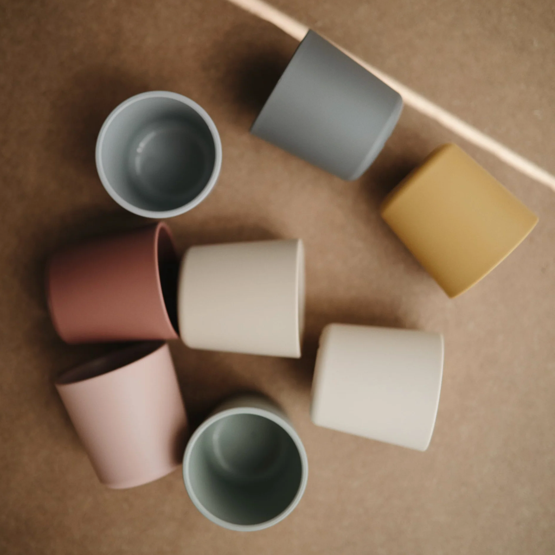 With soft colors and clean design, this plastic dinnerware cup set is simple and elegant, and easy for your baby to hold.