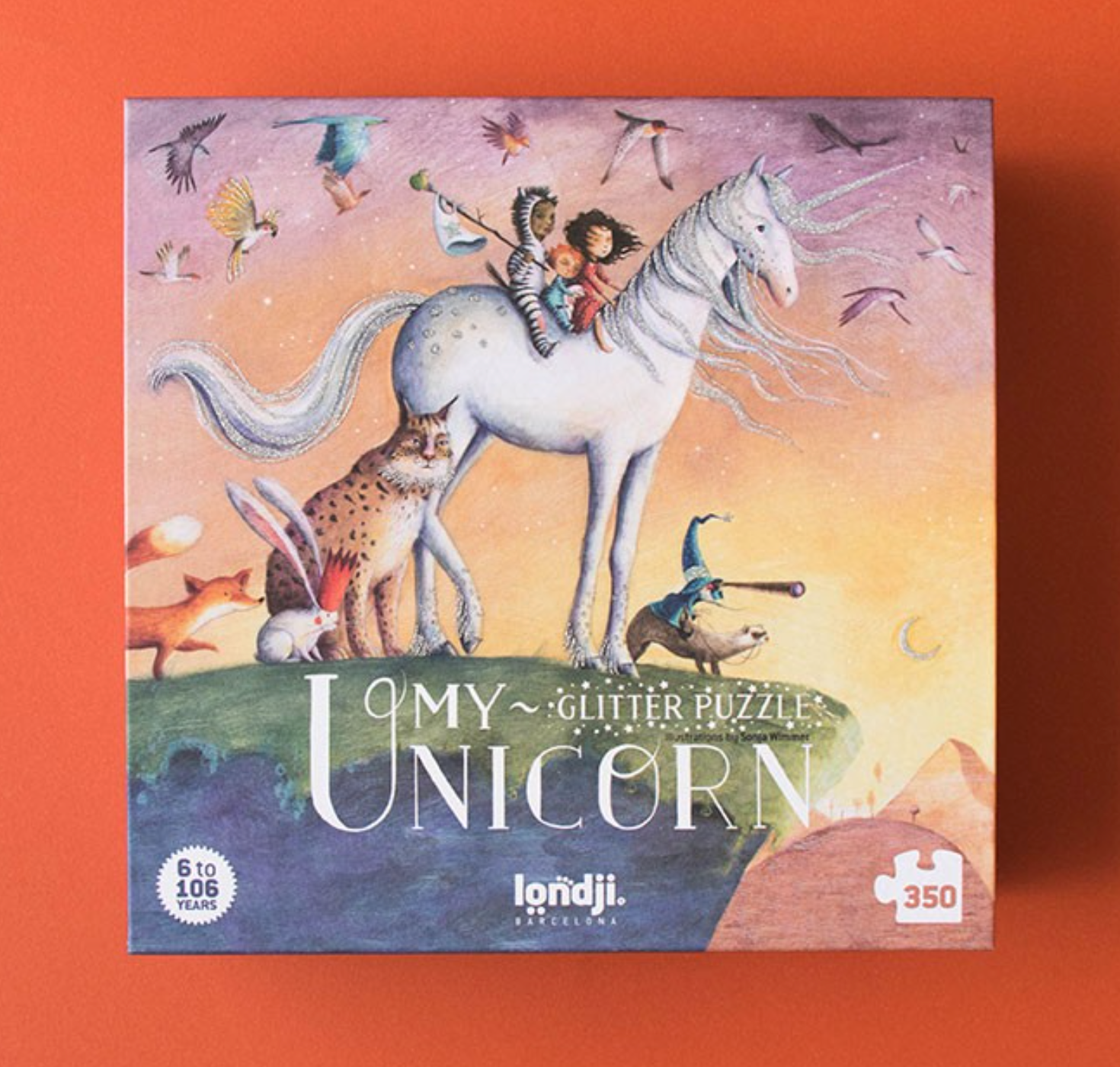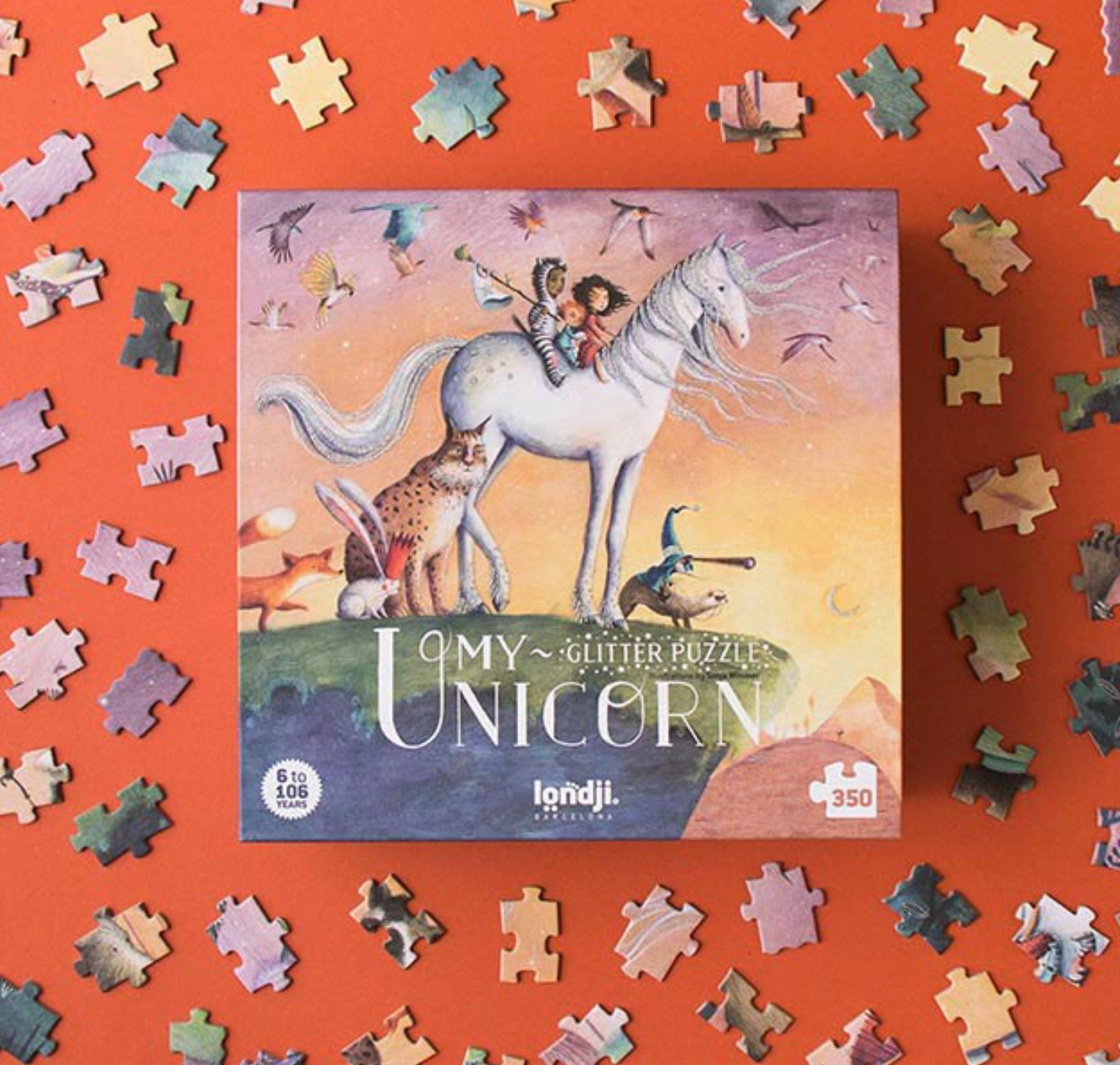 My Unicorn puzzle is a "Sparkly" masterpiece of magical art featuring a mystical Unicorn- everyone's obsession at the moment. A great project for the whole family to enjoy together, this 350 piece puzzle fits together to depict a mythical glitter scene starring a Unicorn.
