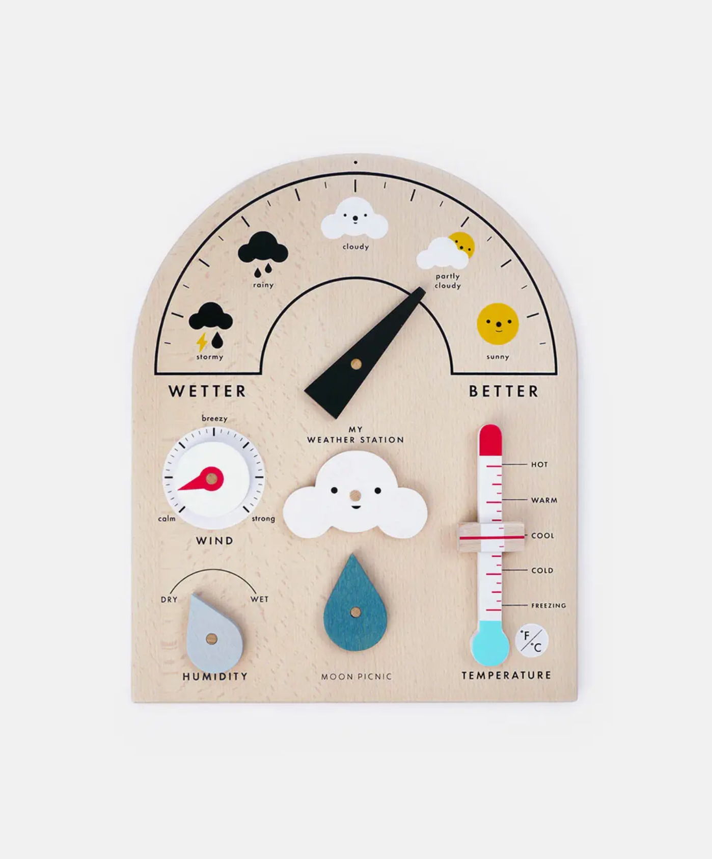 Move the weather meter, turn the dials, slide the thermometer.