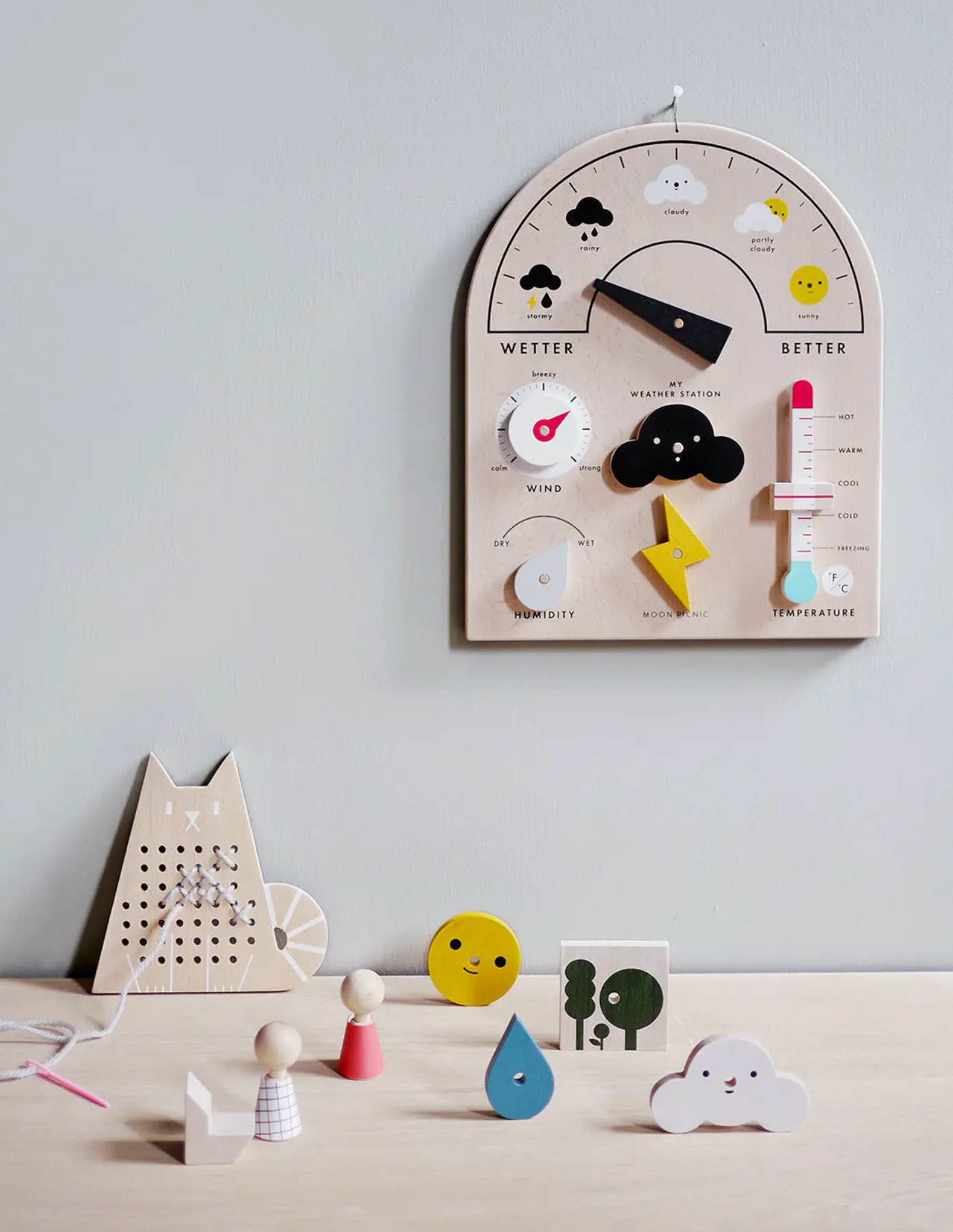 This fun &educational interactive toy has 4 movable parts and 5 weather symbols to display so little meteorologists can report and forecast the weather.