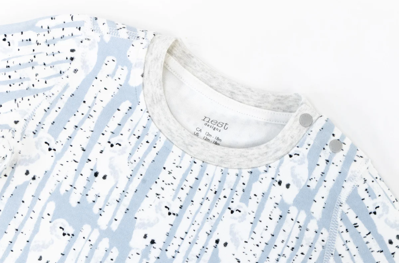 Our two-piece organic cotton PJ set are perfect for your growing toddler. Made from GOTS certified organic cotton, your toddler will love the softness against their skin. Organic cotton is breathable, hypoallergenic, and made to last. The fabric is grown without the use of harmful pesticides, creates less carbon emissions, and is good for the planet and your baby. This two-piece PJ set comes in our Penguin Love print, a part of our FW22 Polar Pals collection.
