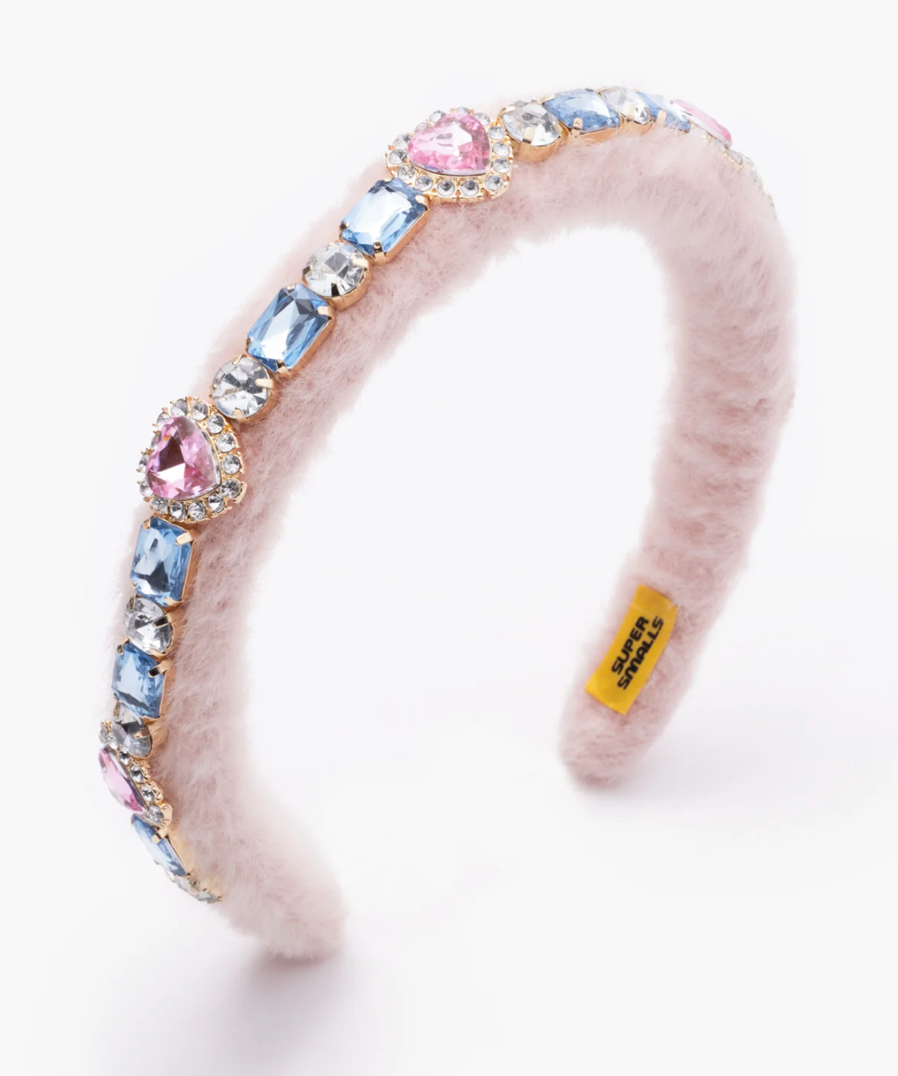 - Adorned with pink hearts, blue gems & white gems