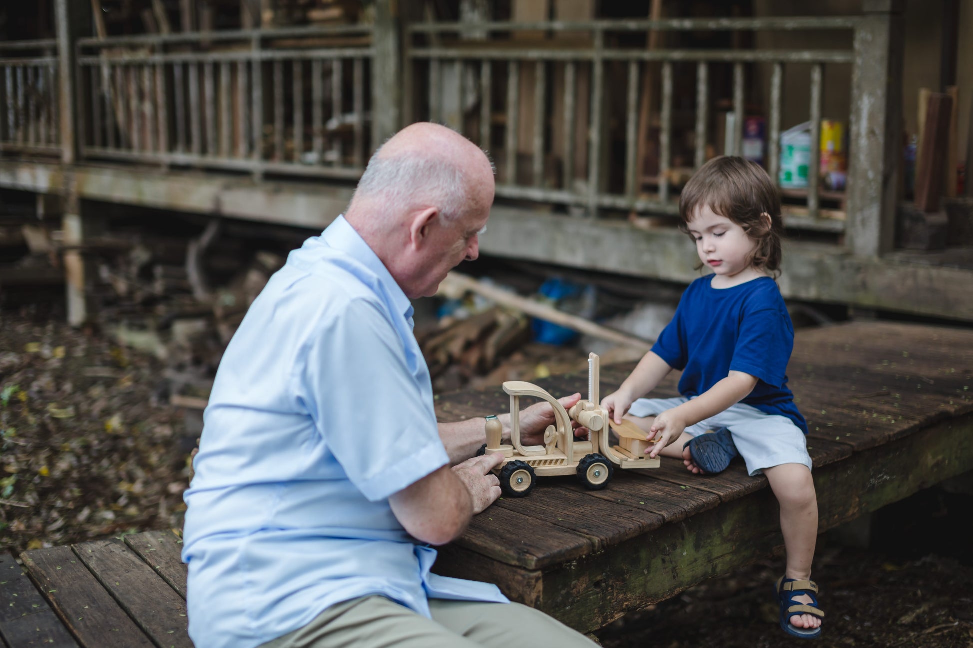 The design and function of this vehicle is based on a real forklift. The back knob helps direct the forklift from left to right, and the lift makes a sound when the side knob is turned to move the pallet and wooden cubes up or down.