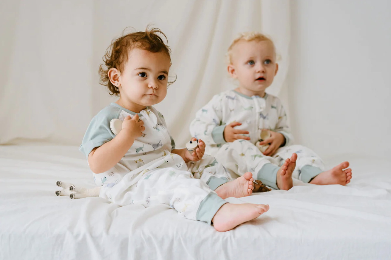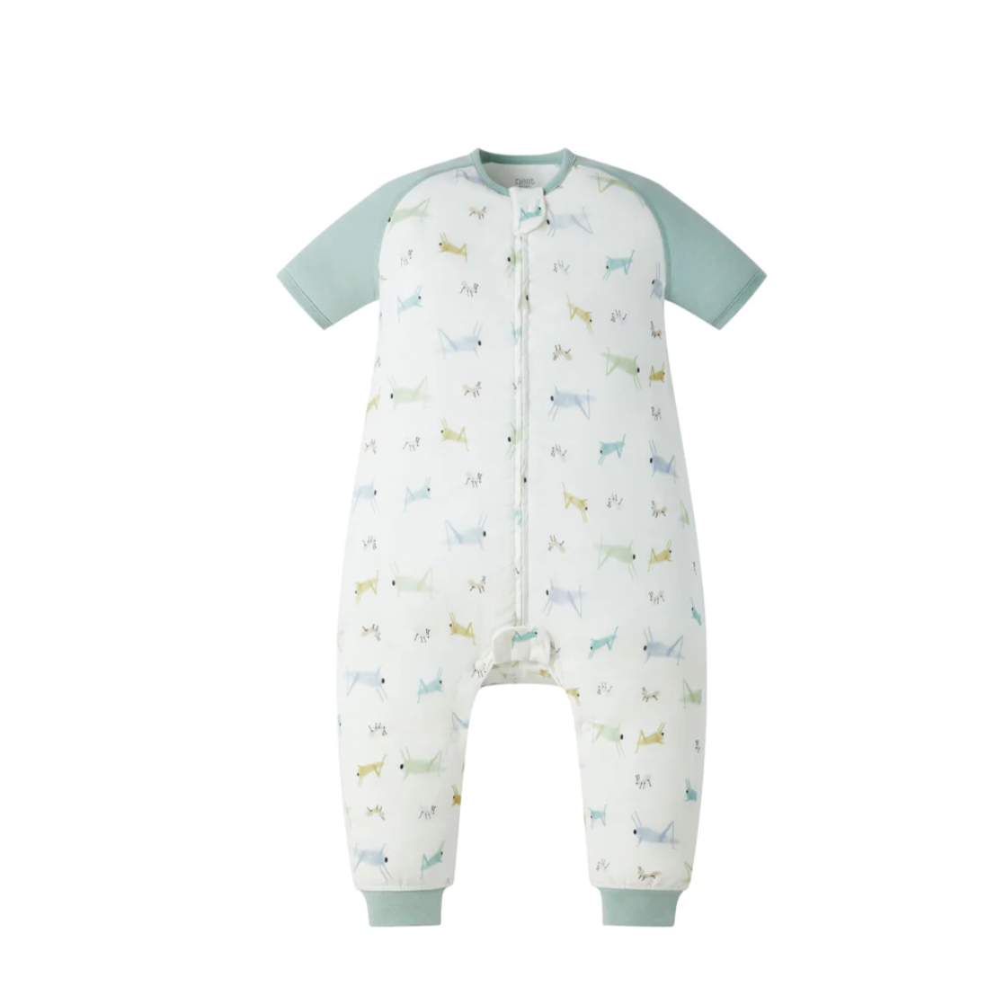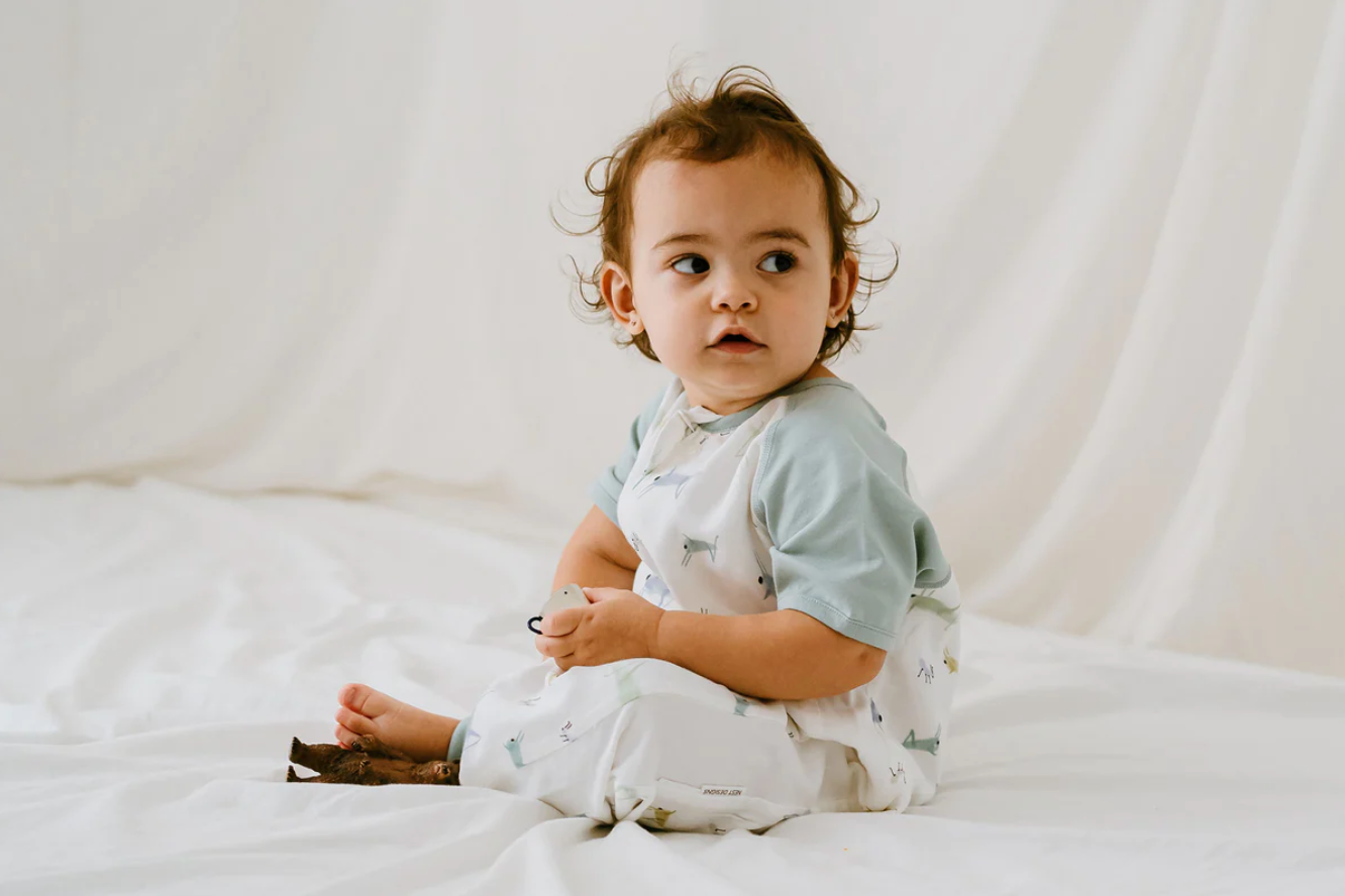 Our short sleeve footed sleep bags (previously called sleep suits) are designed to keep your bubs safe, warm, and comfortable during their naps and at night. They could be used for transitioning your little ones out of a swaddle. Made with a soft bamboo-Pima cotton blended muslin with 100% organic cotton sleeves, it has a 0.6 TOG rating, perfect for the warmer weather.