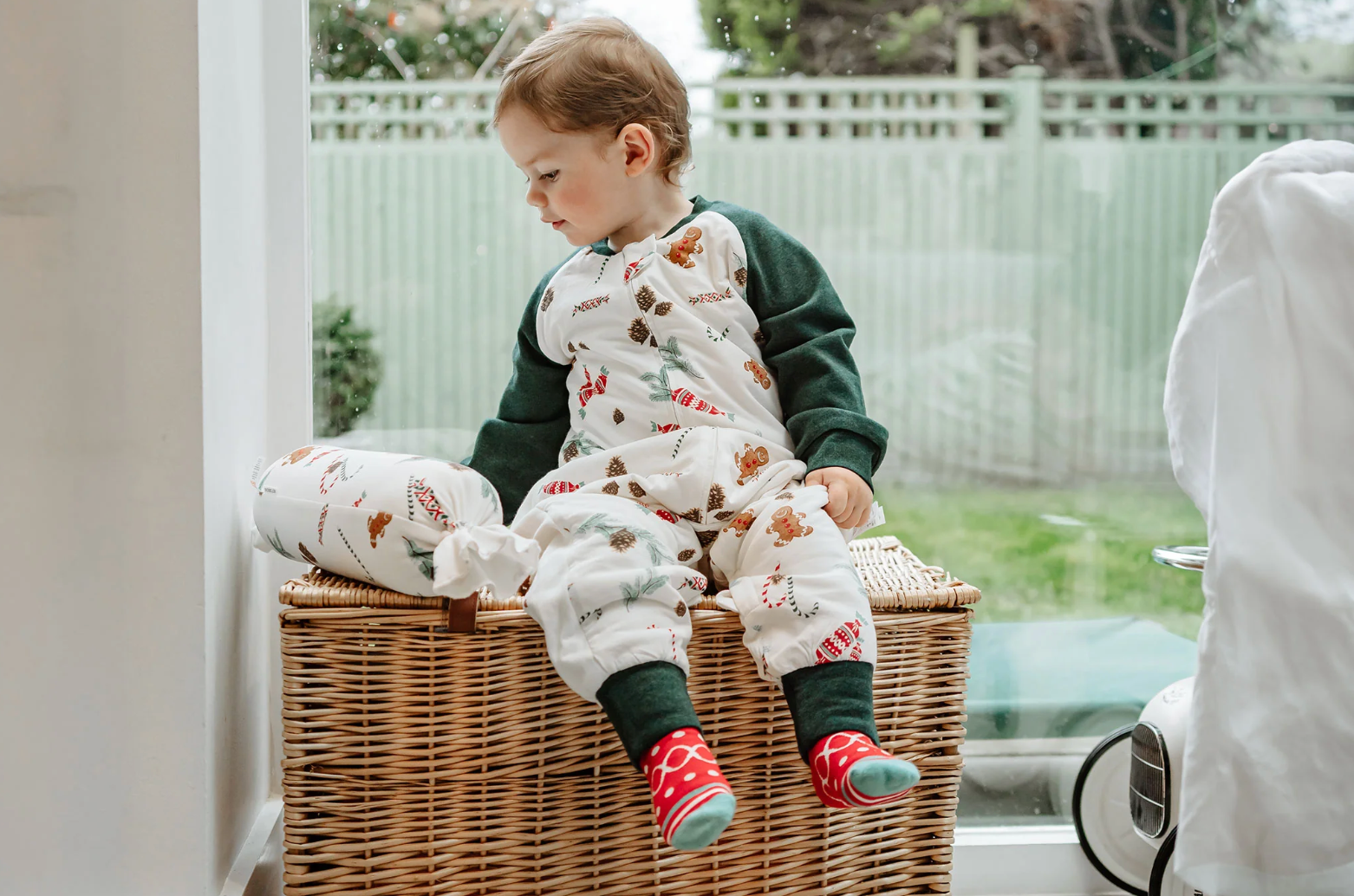Raglan Long Sleeve Footed Sleep Bag 1.0 TOG (Bamboo) - Christmas Day!